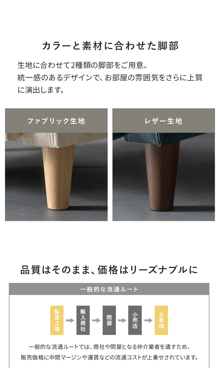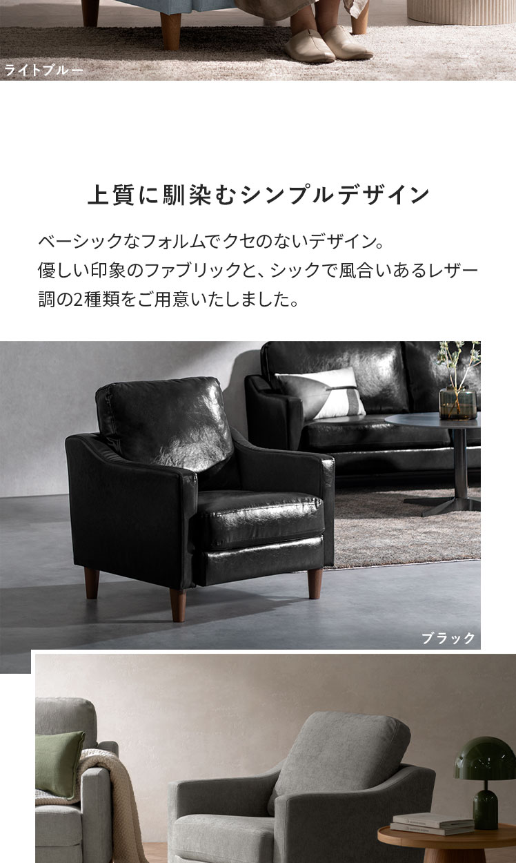 1人掛け ウレタン6層クッション ファブリック 布 レザー アーム付き シンプル ローソファ