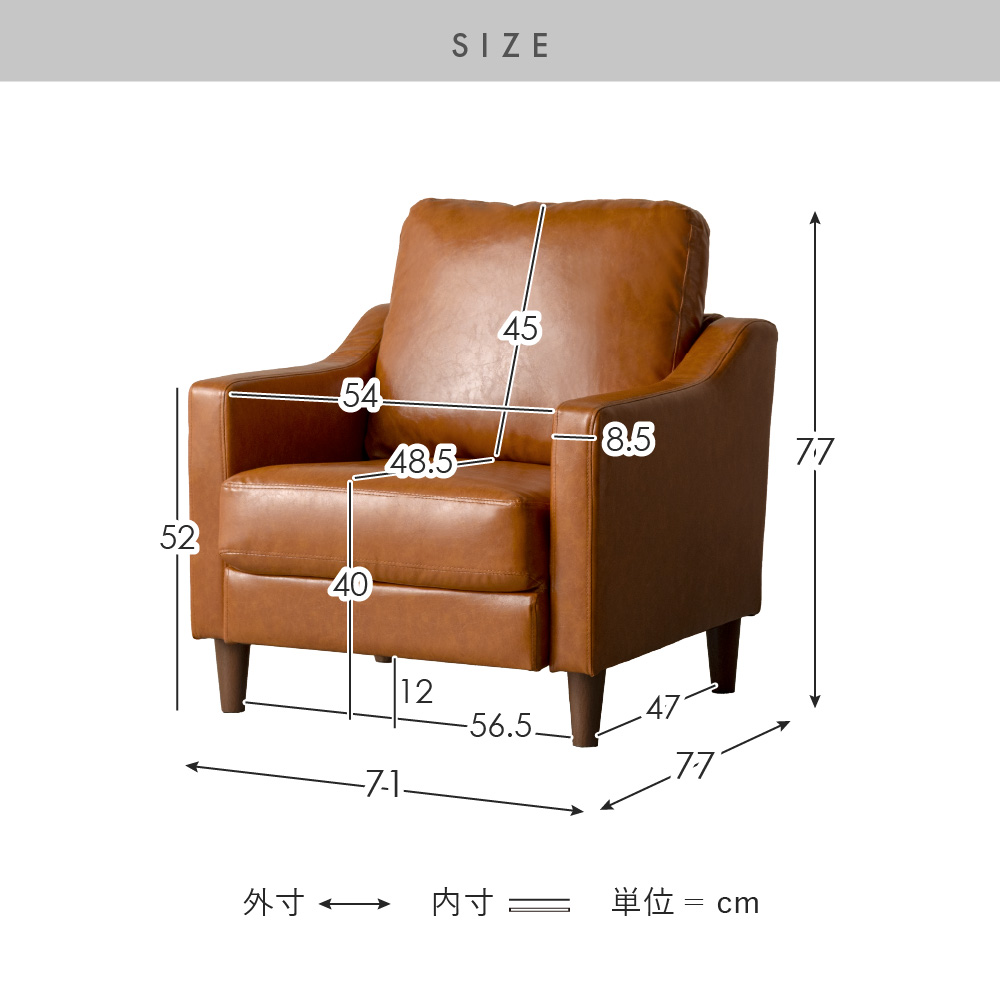 [幅71] 1Pデザインソファ LAURU〔ラウル〕組み立てタイプ