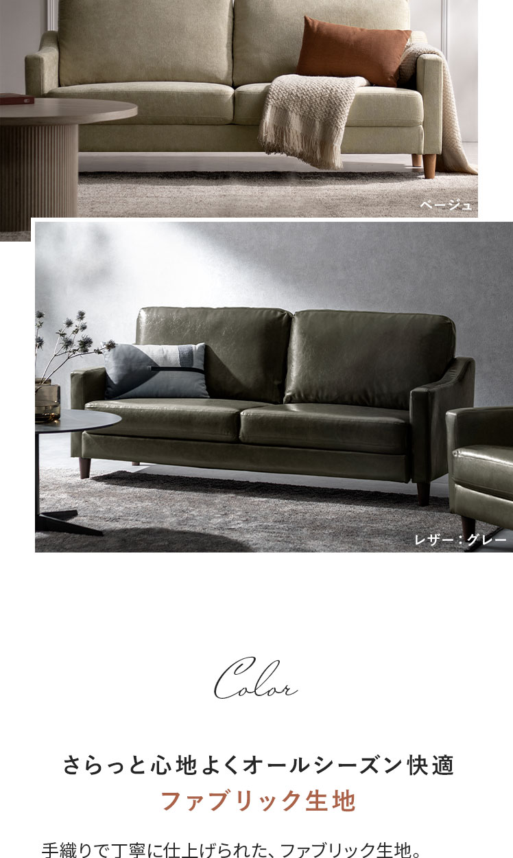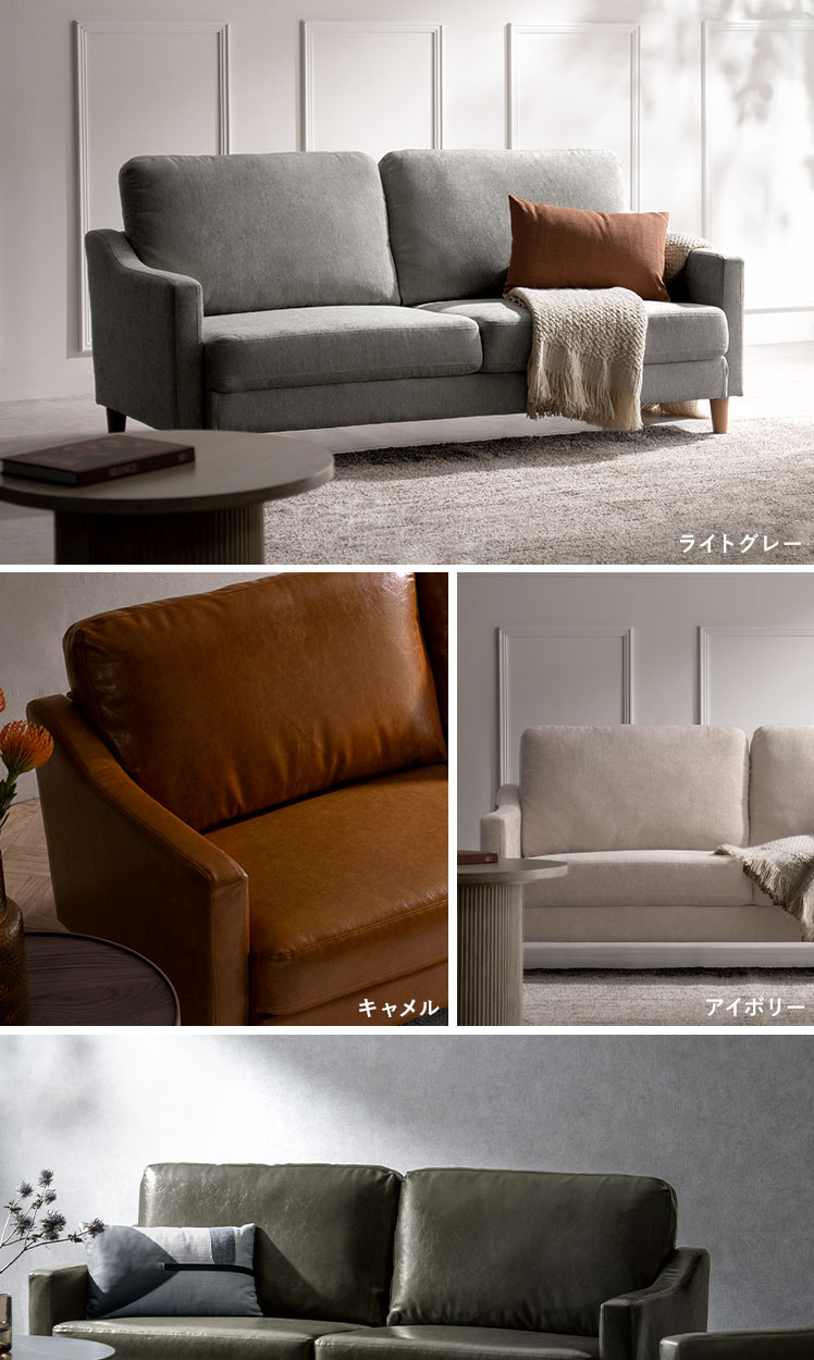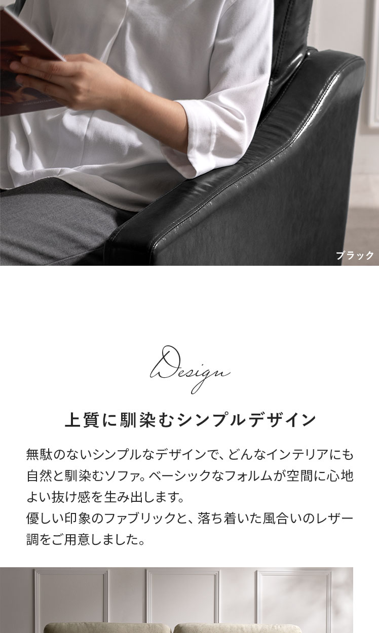 2人掛け ウレタン6層クッション ファブリック 布 レザー アーム付き シンプル ローソファ