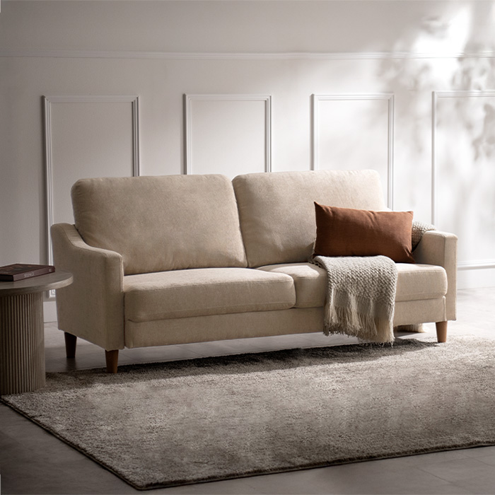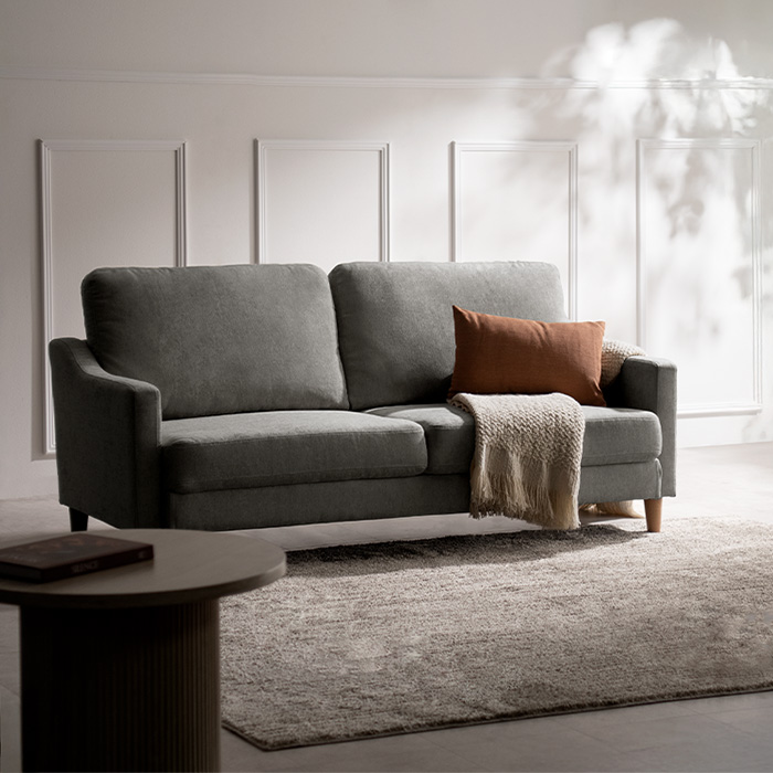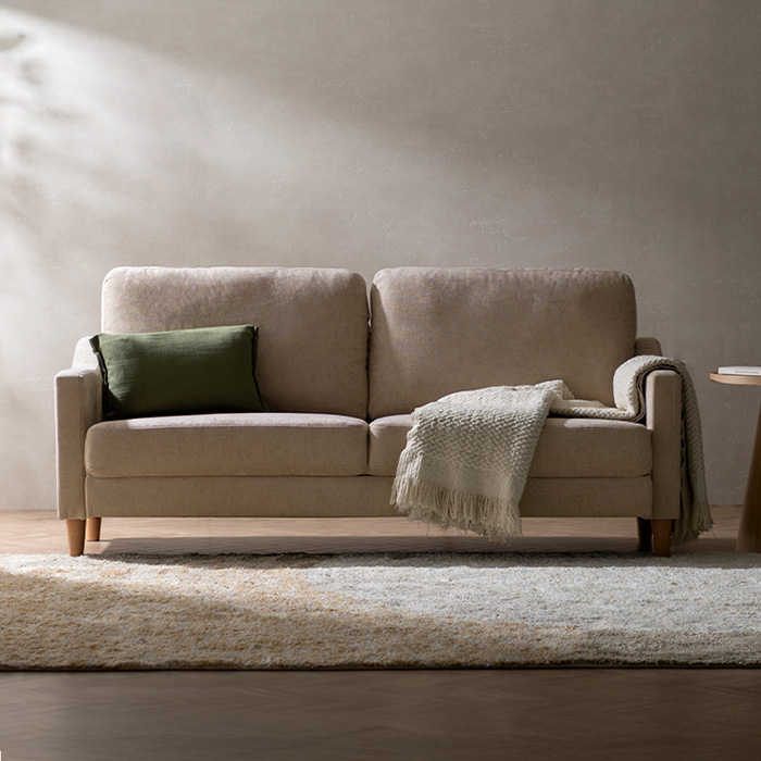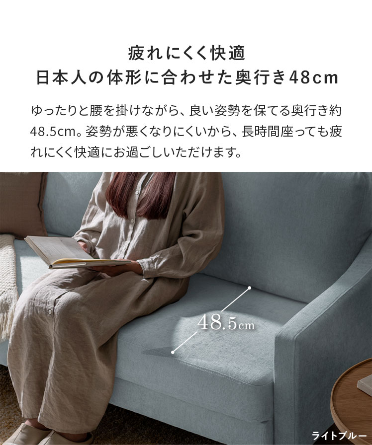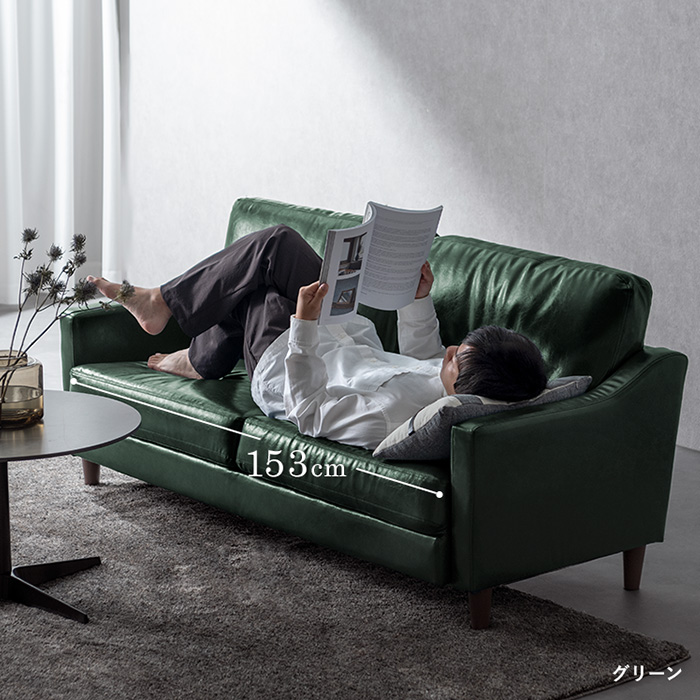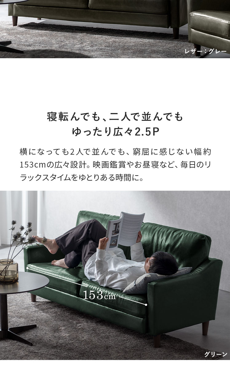2.5Pデザインソファ LAURU〔ラウル〕組み立てタイプ/横になっても2人で並んでも、窮屈に感じない幅約153cmの広々設計。映画鑑賞やお昼寝など、毎日のリラックスタイムをゆとりある時間に。