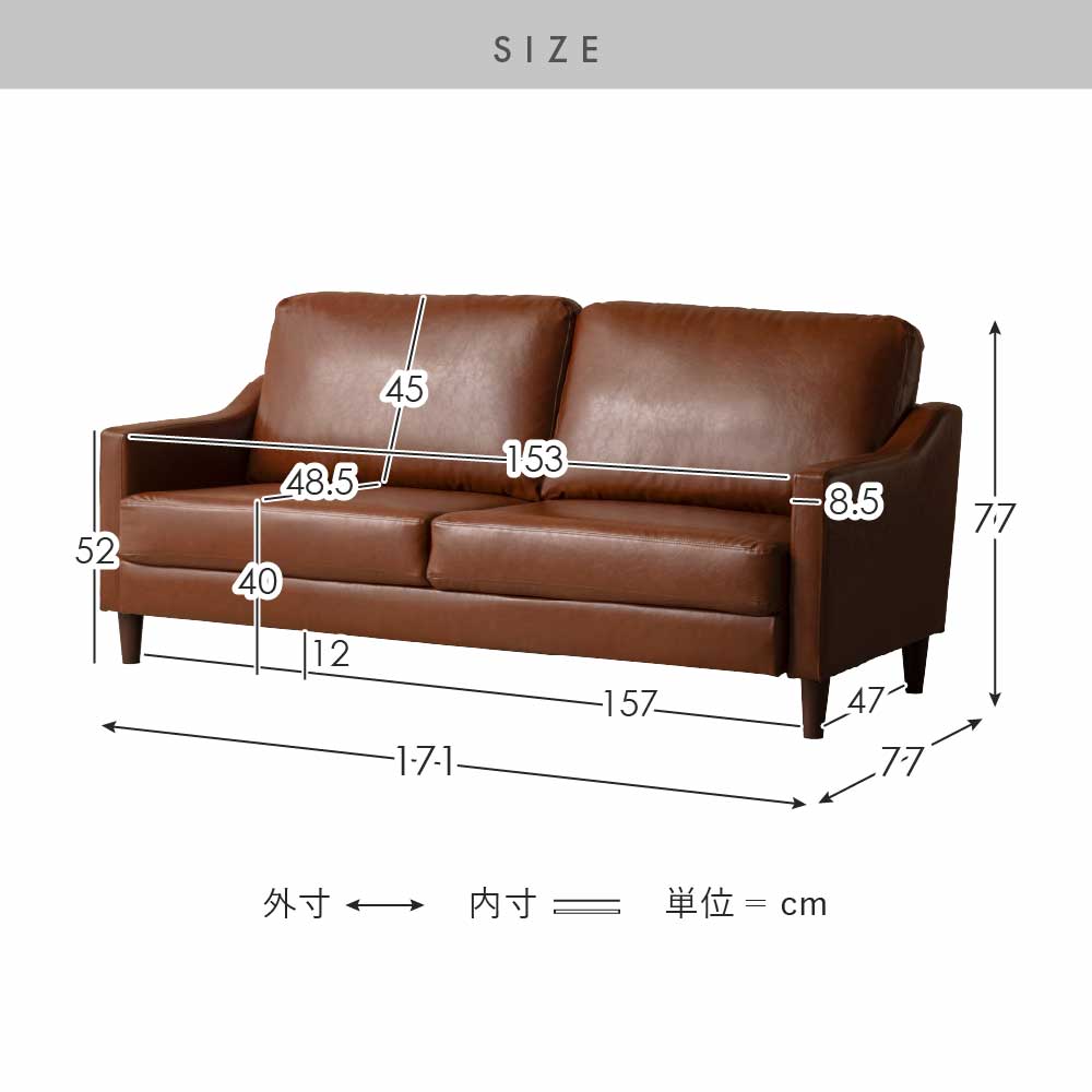 サイズ | 約幅171×奥行き77×高さ77cm |