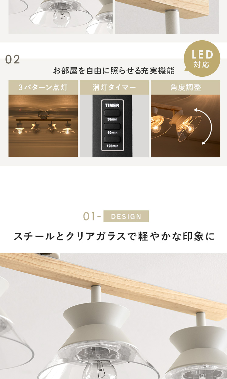 照明 リビング 天井照明 スチール ガラス 天然木 木目 角度調整 タイマー付き リモコン付き 3段階 ガラスシェード 北欧 レトロ LED 対応 6畳 ホワイト ナチュラル 〇【5%OFFクーポン対象|公式なら毎日お得】