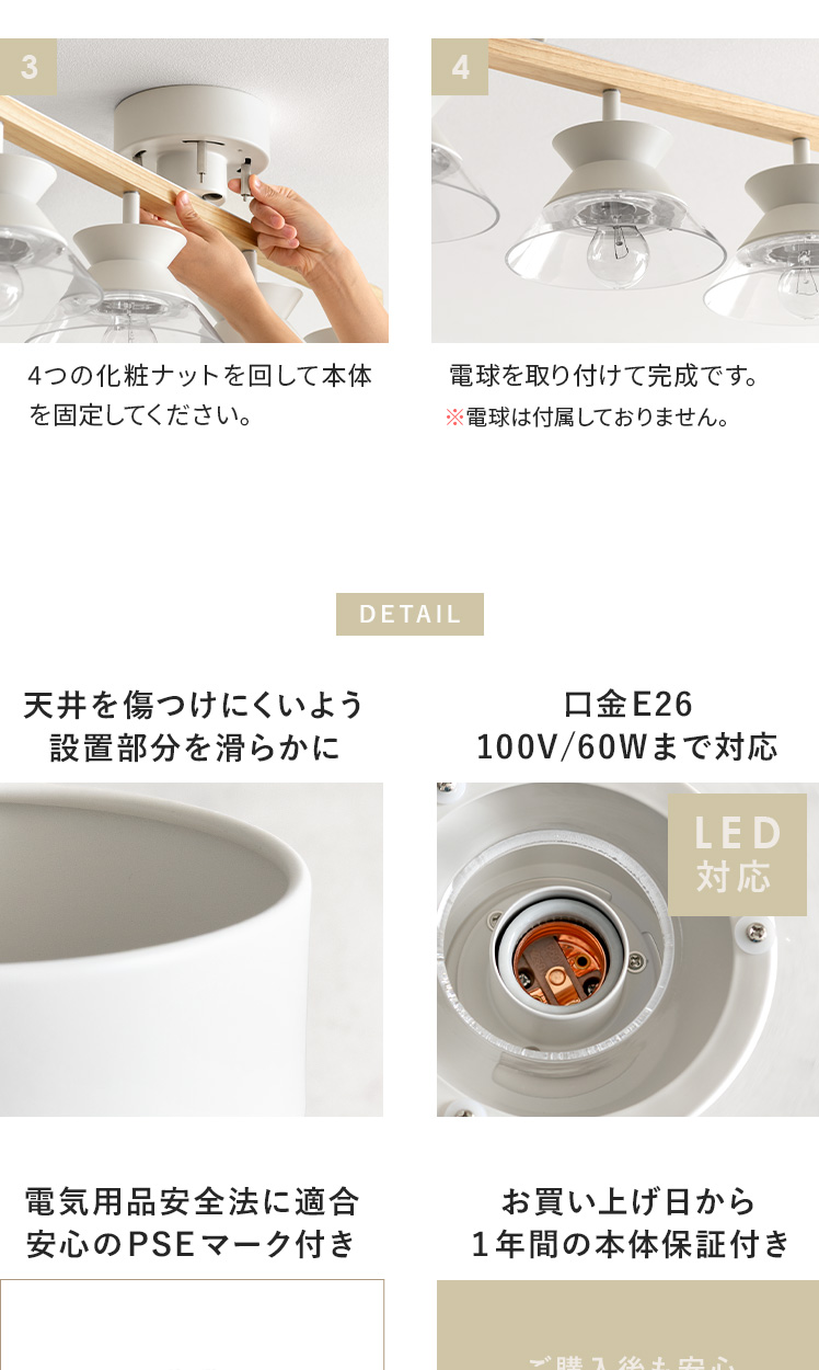 | 備考 | 組立式(組立て時間約5分) リモコン付き、LED対応、点灯パターン切替、1年保証 ※こちらの商品には電球は付属しておりません。 ※斜めの天井設置は不可となっております。 ※若干の個体差により、表記サイズと多少の差異が生じる場合がございます。 |