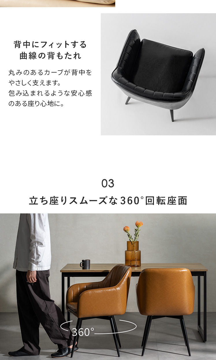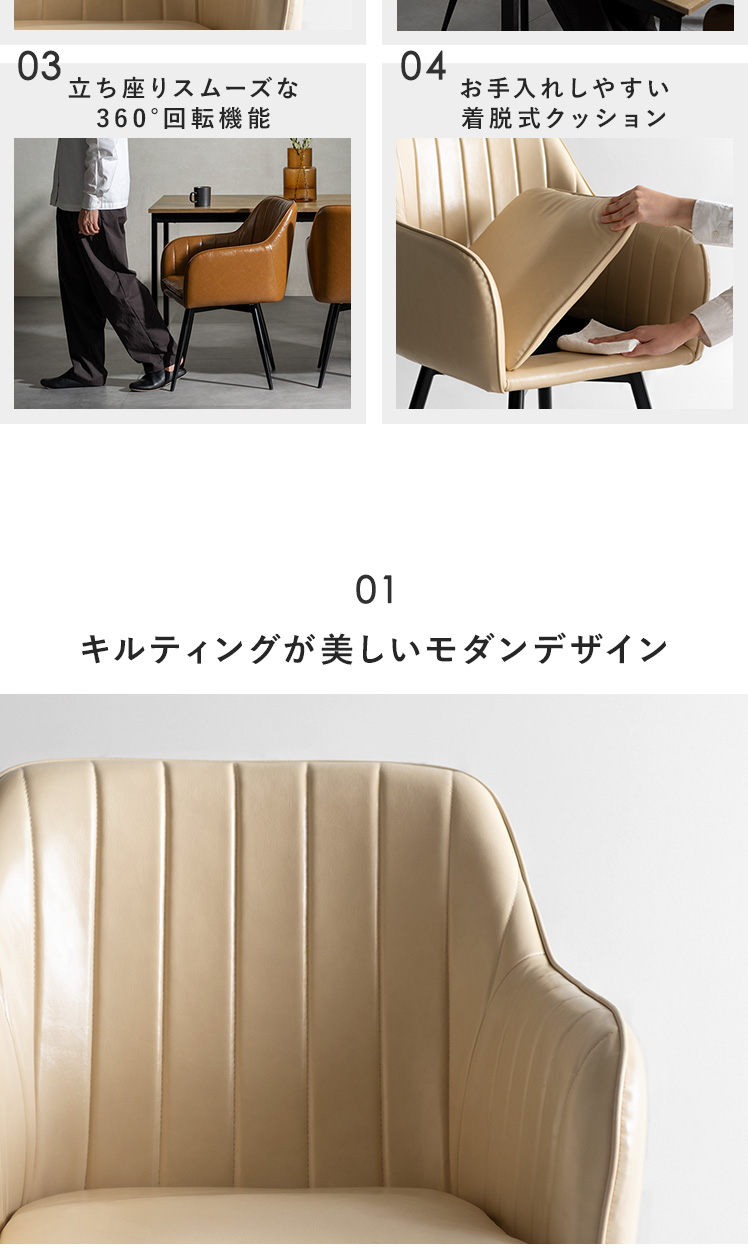 ダイニングチェア 回転 肘付き 椅子 レザー 1脚 1P キルティング PUレザー おしゃれ 回転椅子 ダイニング 回転式 回転チェア チェア 椅子 ダイニングチェアー アームチェア デスクチェア 360°回転 座面取り外し クッション ブラック ベージュ キャメル【公式限定|いつでも3%OFFクーポン対象】