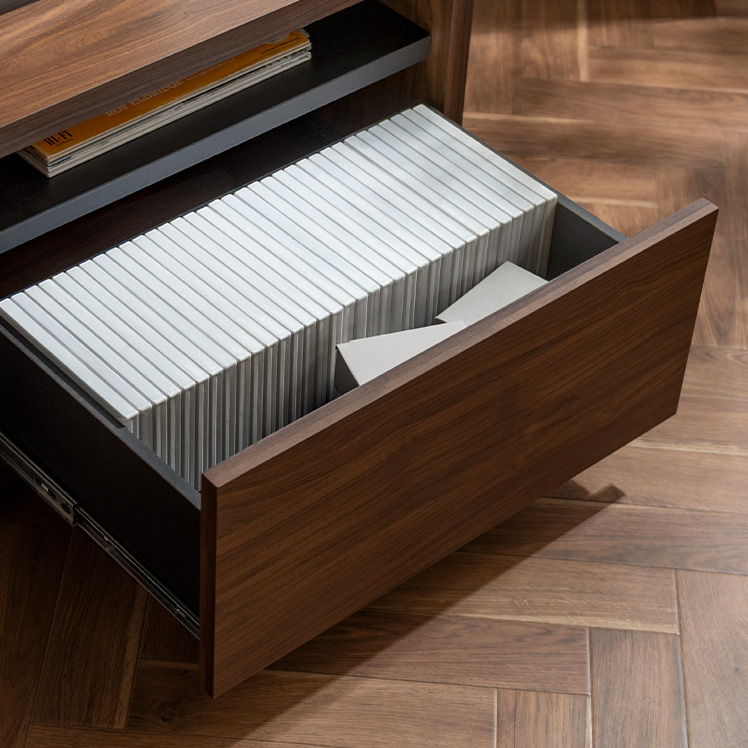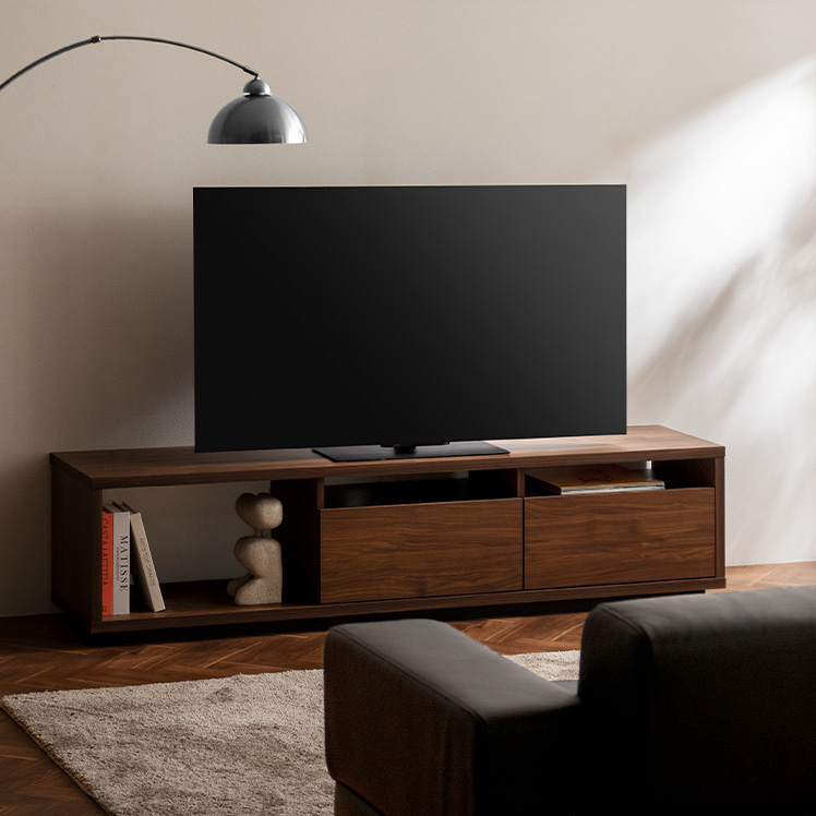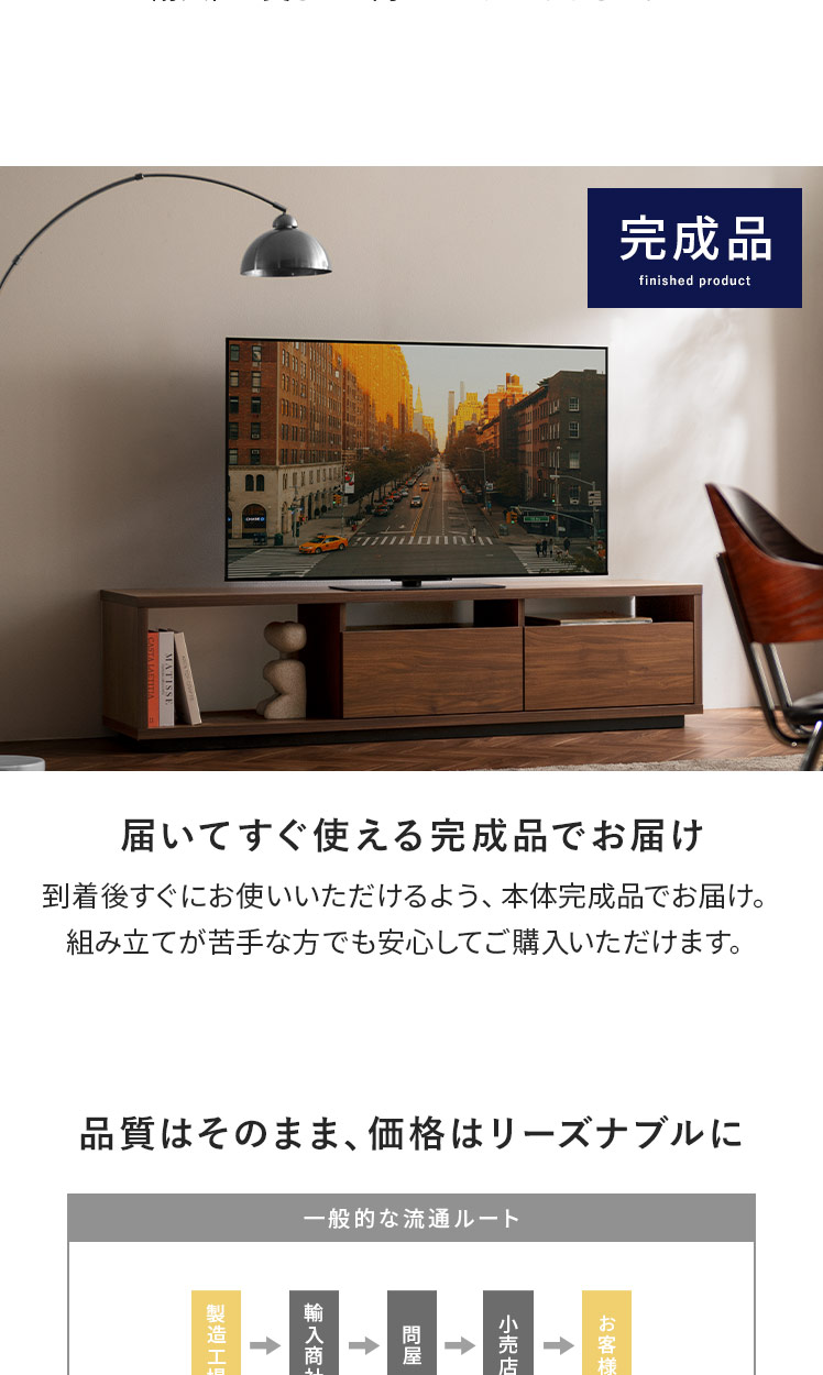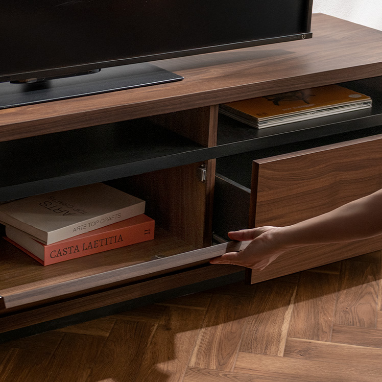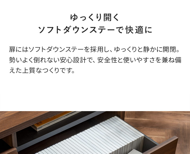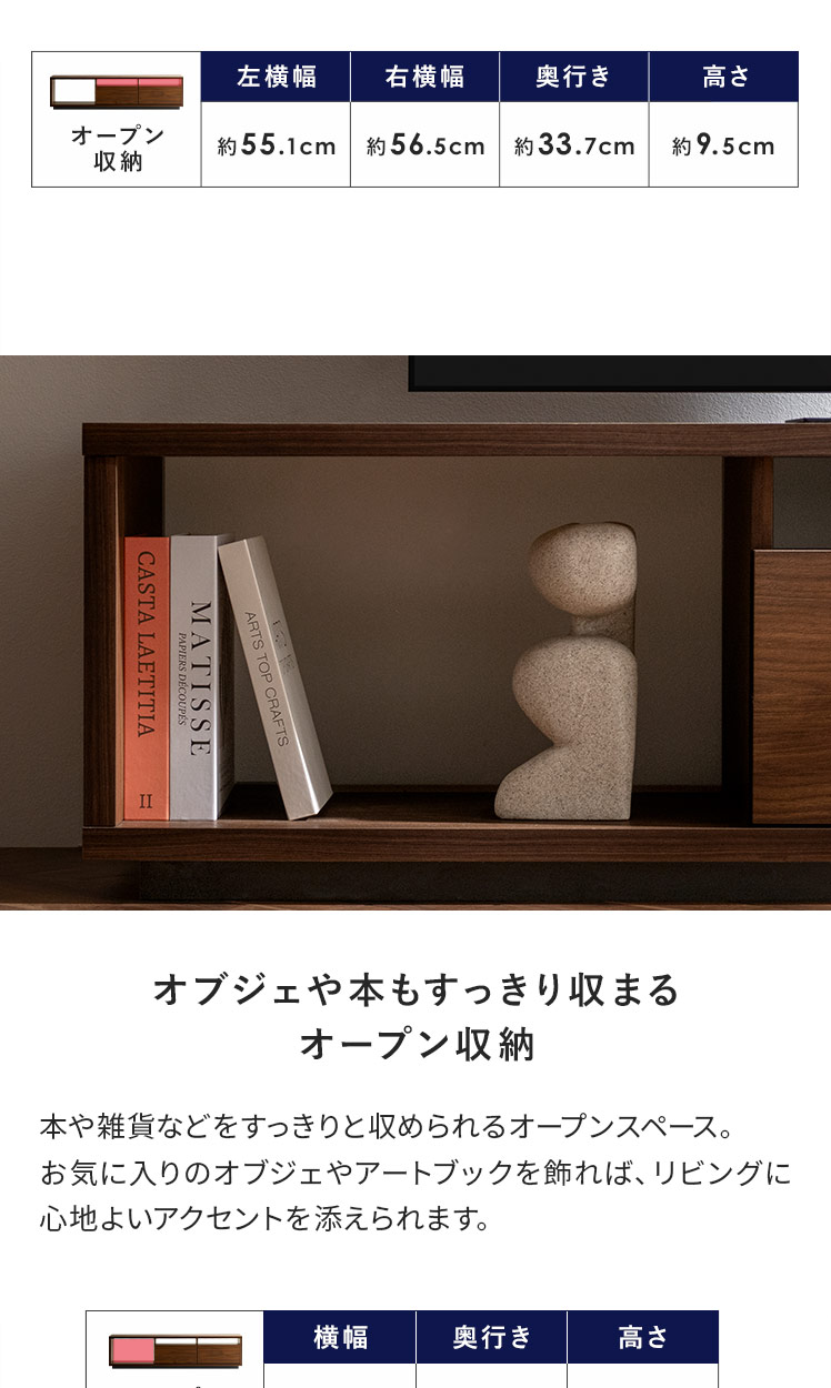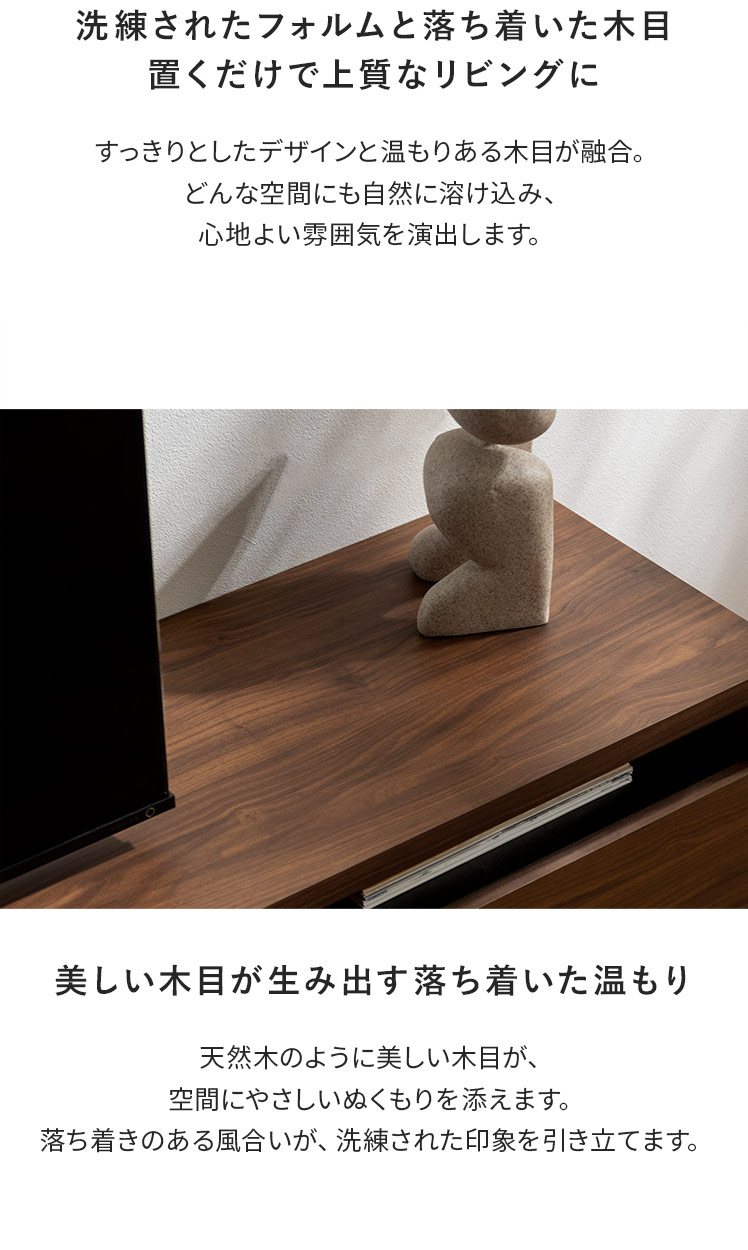 日本製テレビボードLusk〔ラスク〕/研ぎ澄まされた直線が生み出す、凛とした存在感。日本製ならではの確かなつくりと丁寧な仕上げで、永く愛せる品質を実現しました。ミッドセンチュリーやモダンな空間にもしっくりと馴染む、高級感あるテレビボードです。