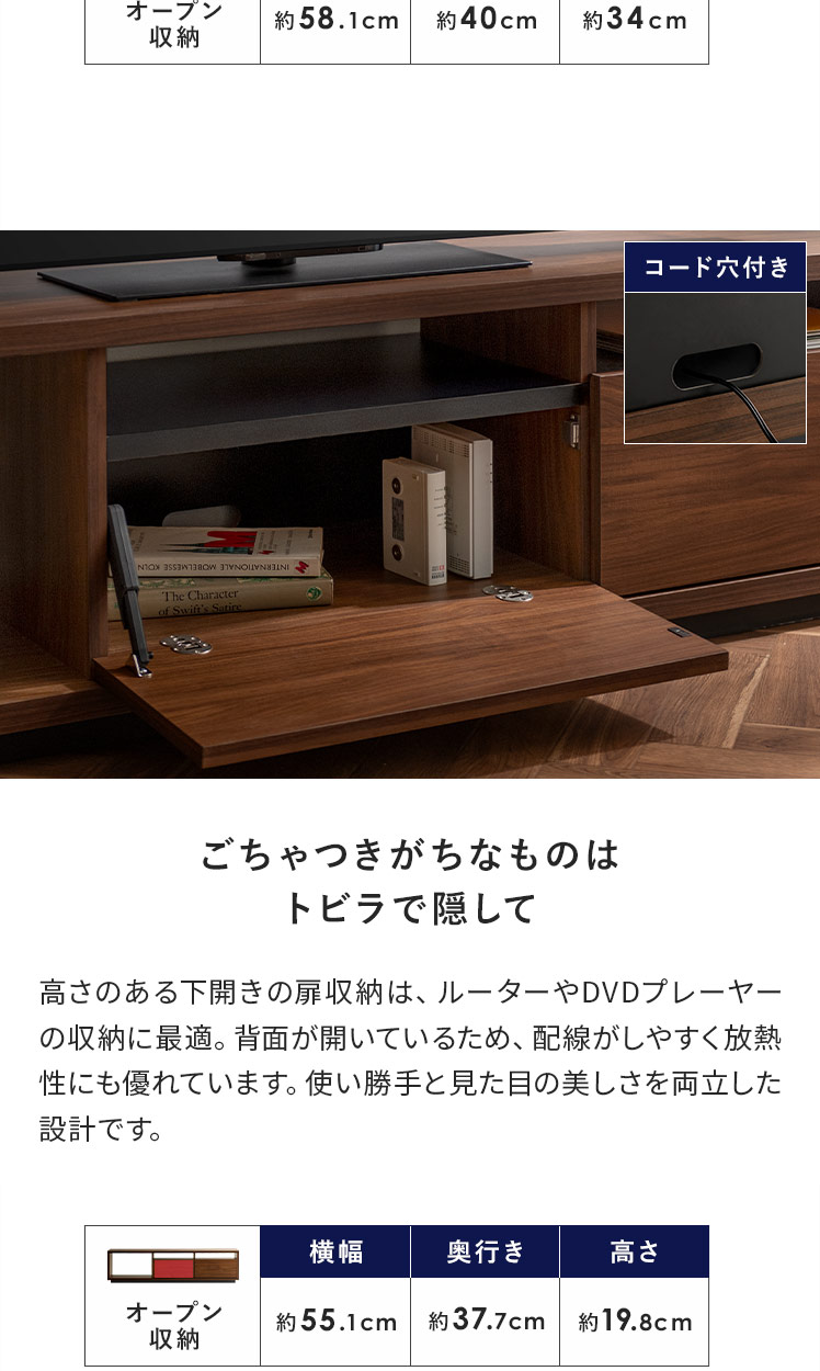 TV台 おしゃれ 木目調 オープン収納 引き出し ソフトダウン
