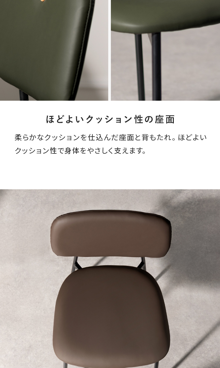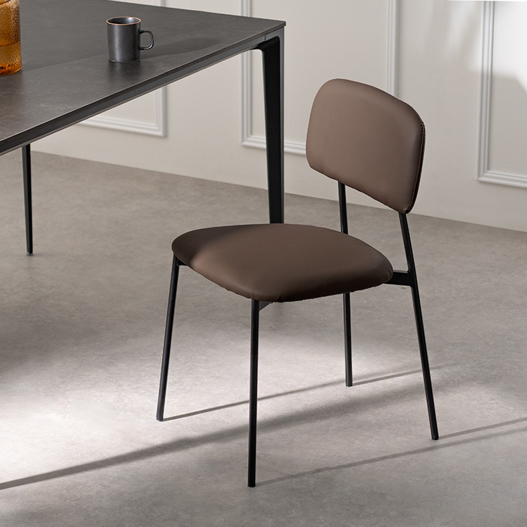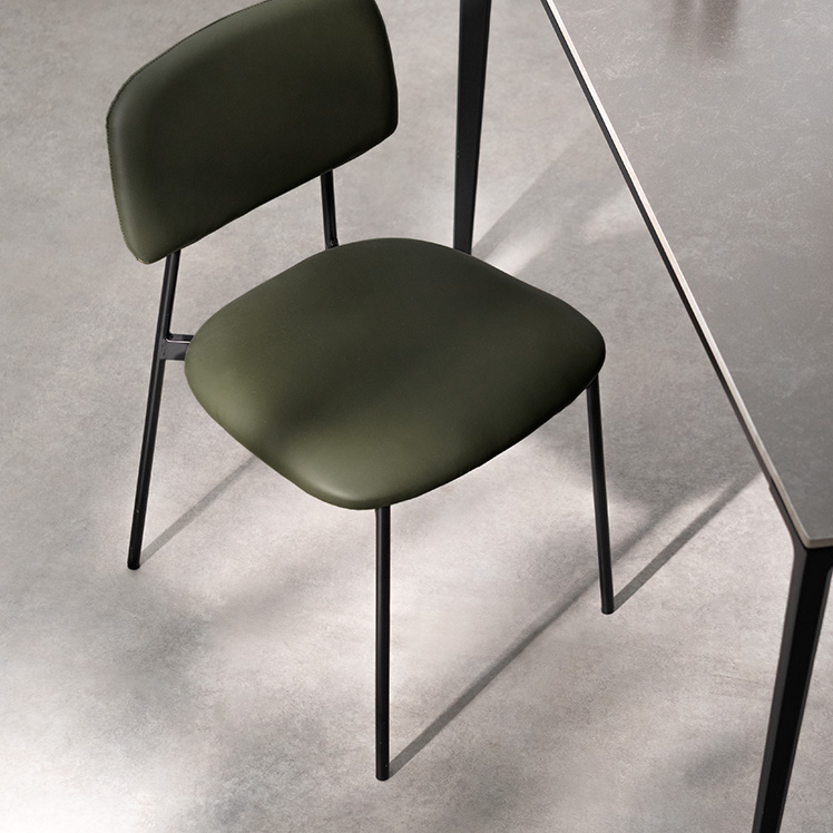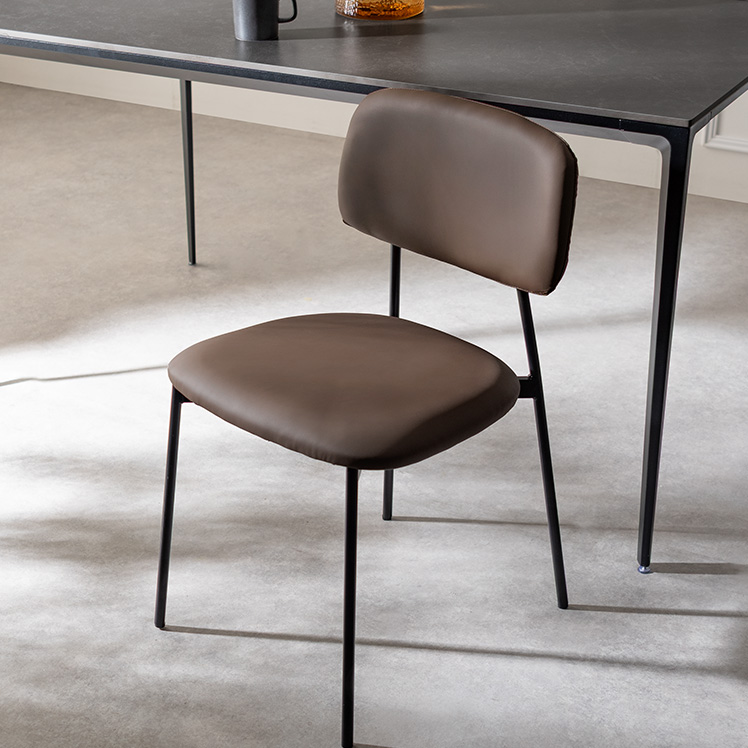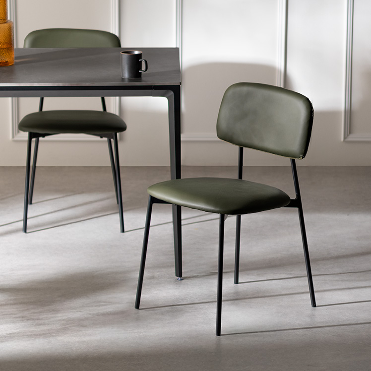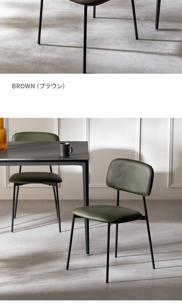 ダイニングチェア KANT〔カント〕 2脚セット/しなやかなレザー座面と、マットな細身スチールの直線美をひとつに。木目・石目・ガラスなど、さまざまなテーブルに馴染むミニマルな一脚です。