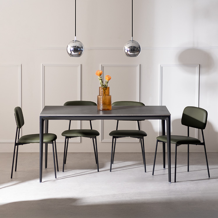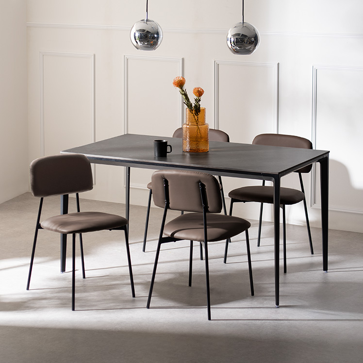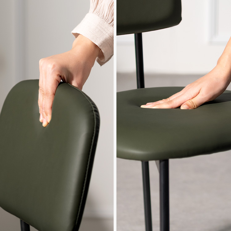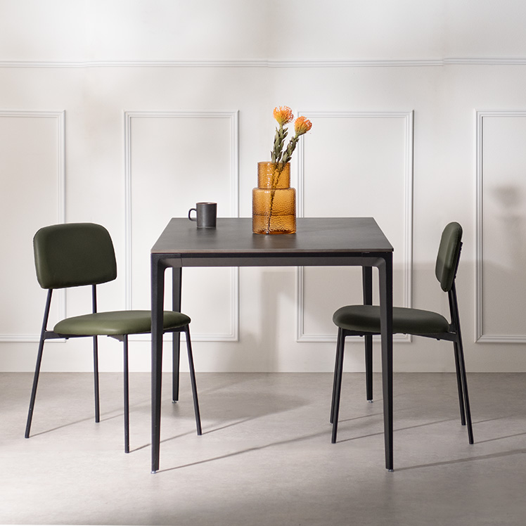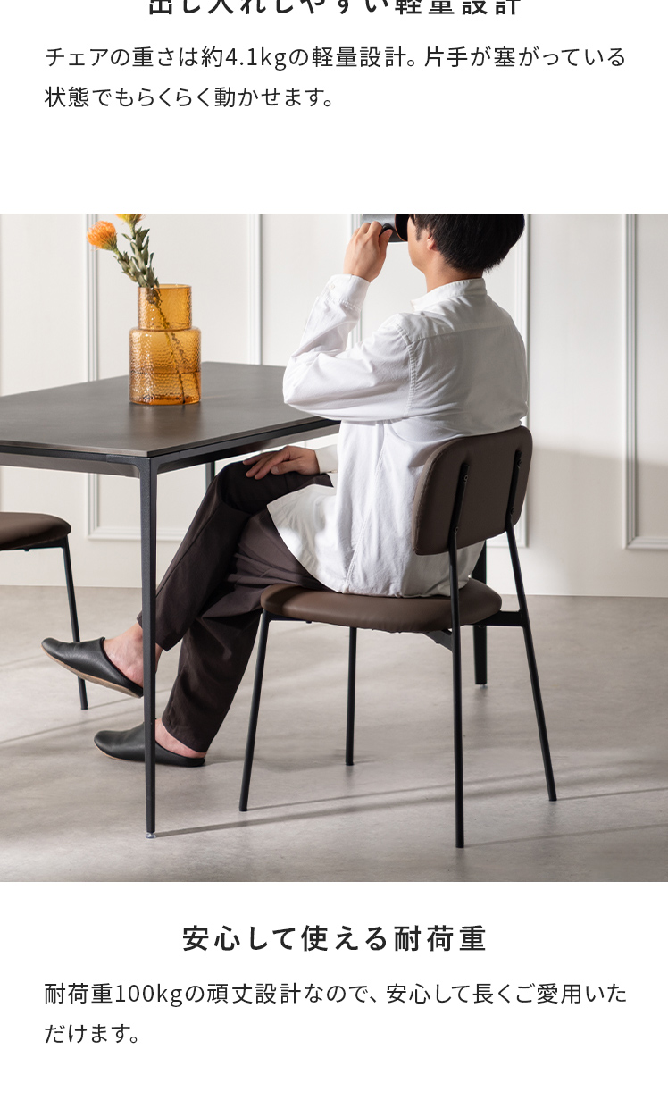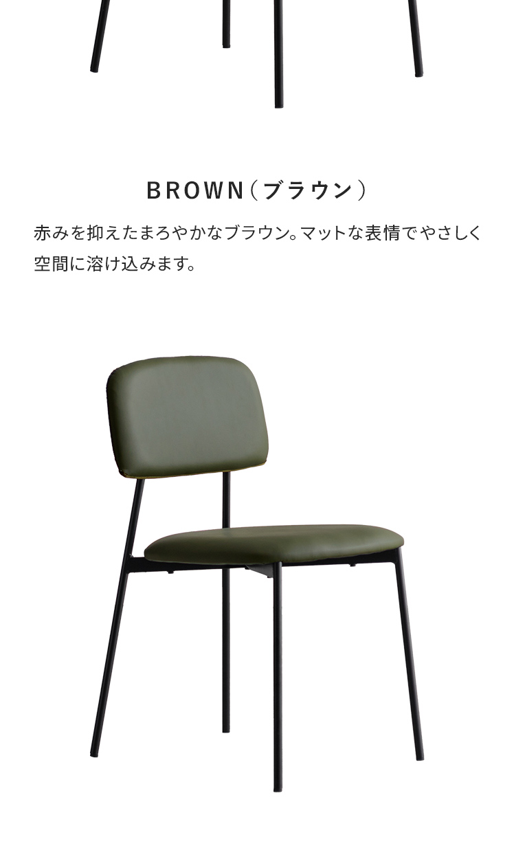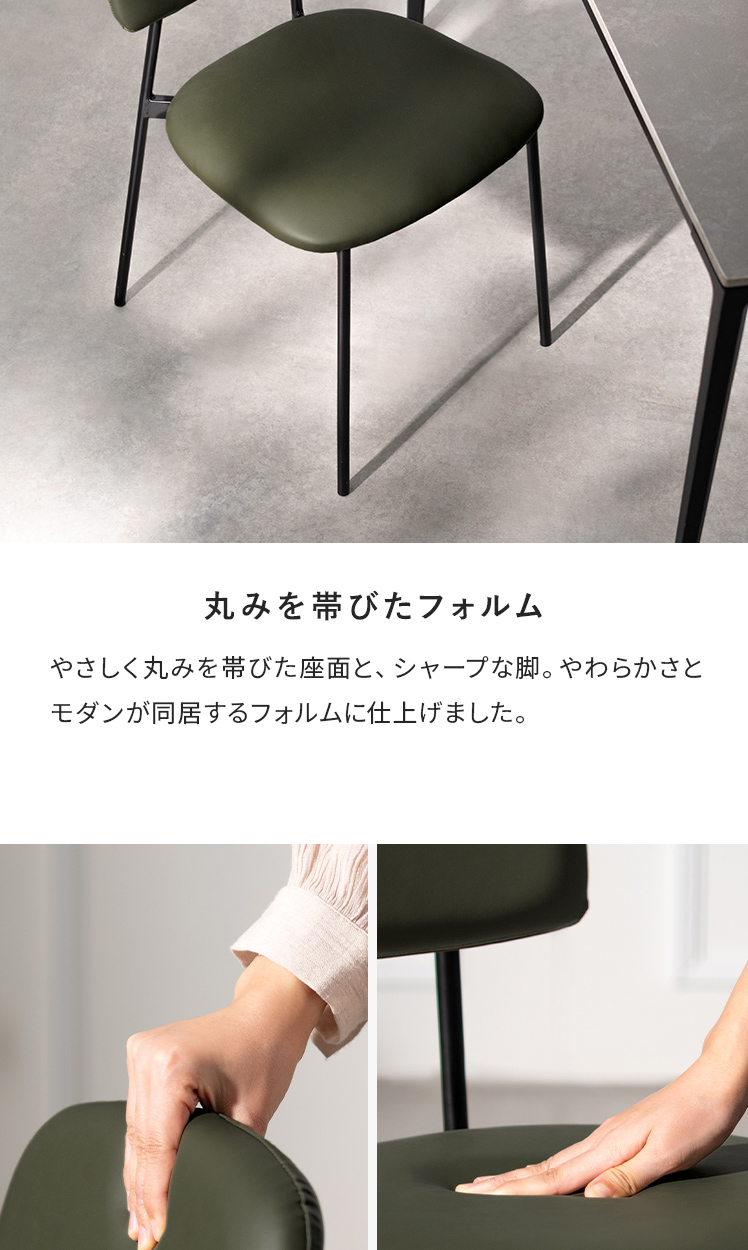 ダイニングチェア KANT〔カント〕 2脚セット/しなやかなレザー座面と、マットな細身スチールの直線美をひとつに。木目・石目・ガラスなど、さまざまなテーブルに馴染むミニマルな一脚です。