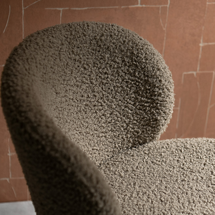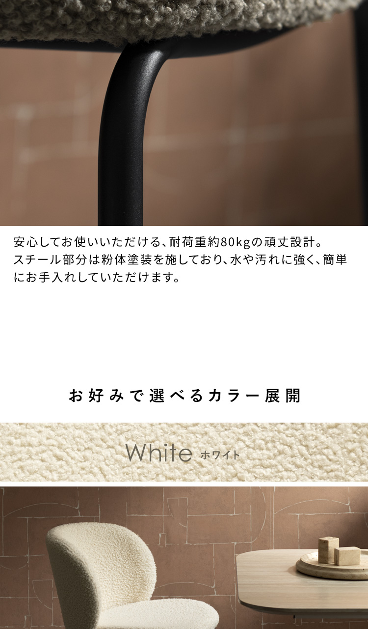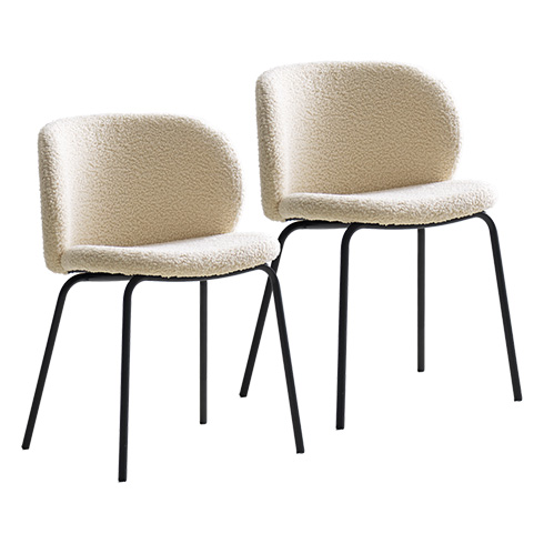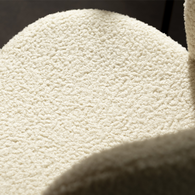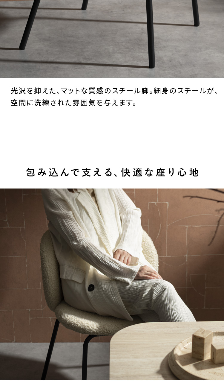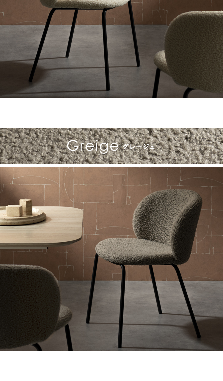 ダイニングチェア Kerin〔カリン〕2脚セット/やわらかな曲線が美しい、ダイニングチェア『Kerin(カリン)』。光の角度によって表情を変えるブークレ生地が、空間に上質な印象を与えます。身体を包み込む背もたれとゆったりとした座面が、長く座っても疲れにくい、快適な座り心地を実現。毎日の食卓を、より優雅で心地よいひとときへと導きます。