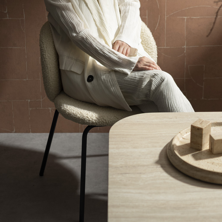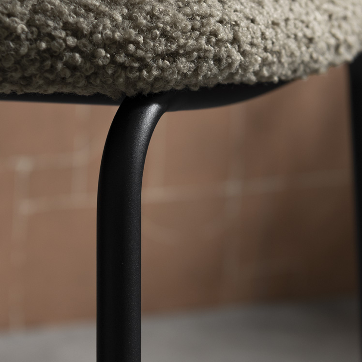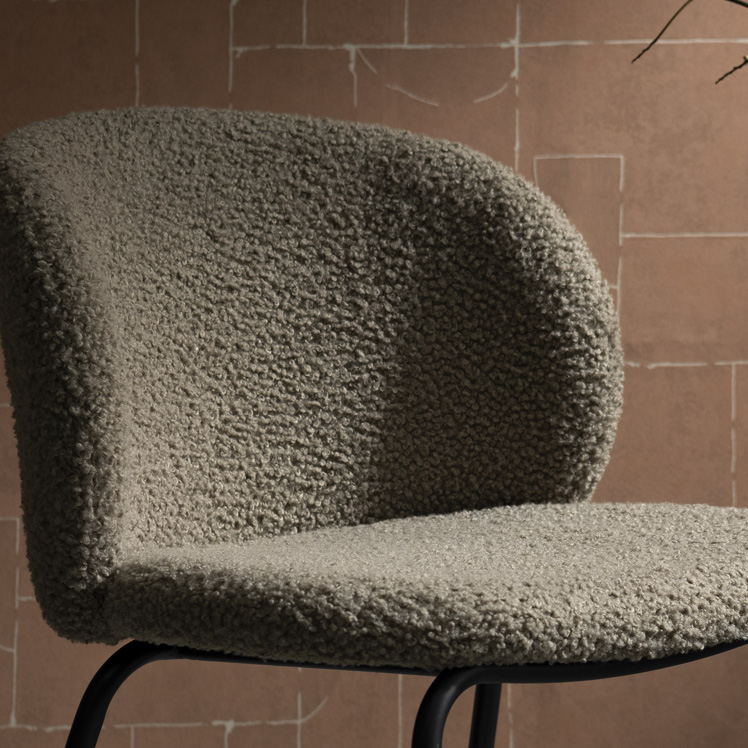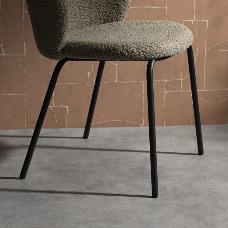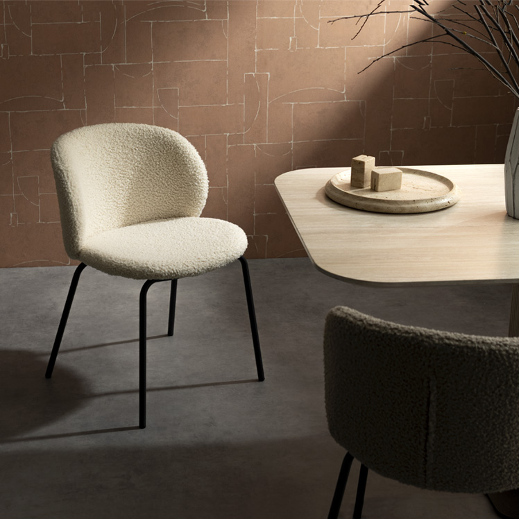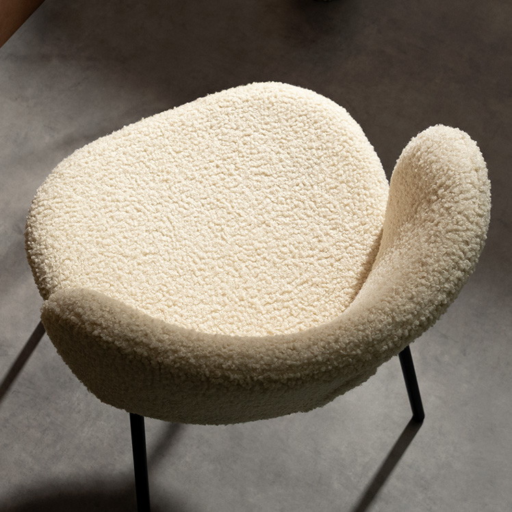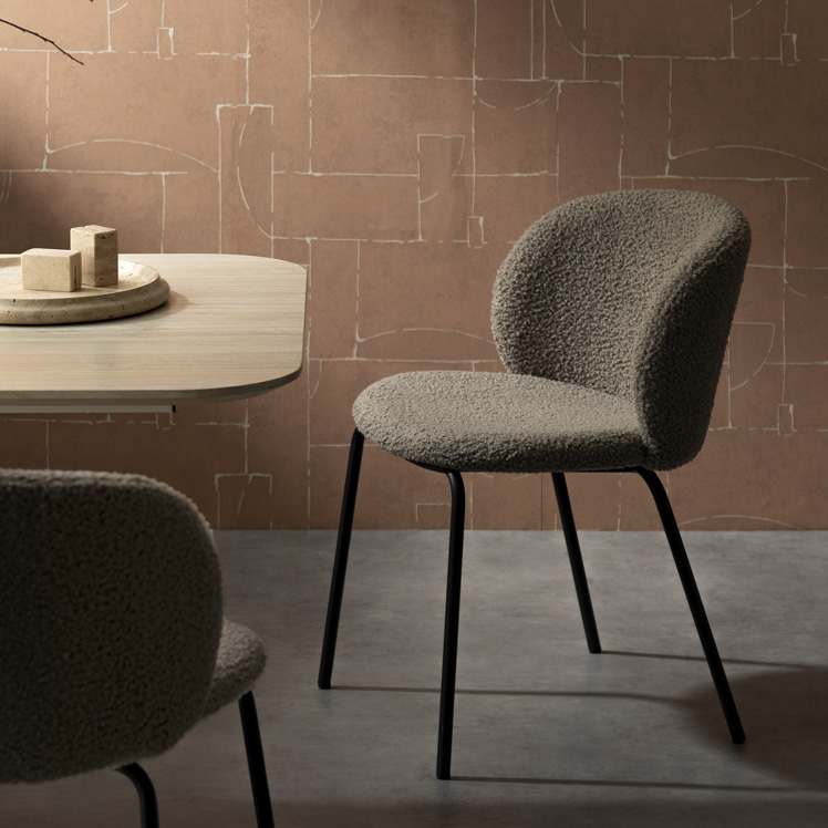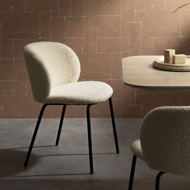 ダイニングチェア Kerin〔カリン〕2脚セット/やわらかな曲線が美しい、ダイニングチェア『Kerin(カリン)』。光の角度によって表情を変えるブークレ生地が、空間に上質な印象を与えます。身体を包み込む背もたれとゆったりとした座面が、長く座っても疲れにくい、快適な座り心地を実現。毎日の食卓を、より優雅で心地よいひとときへと導きます。