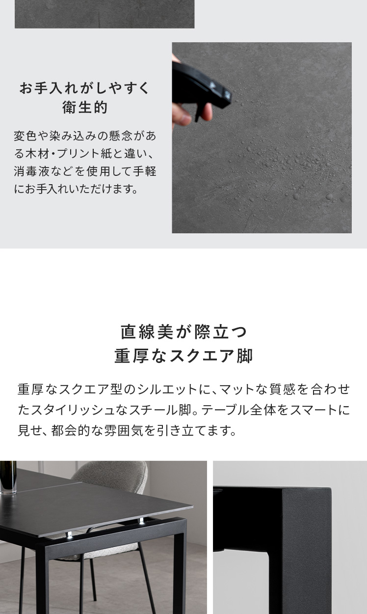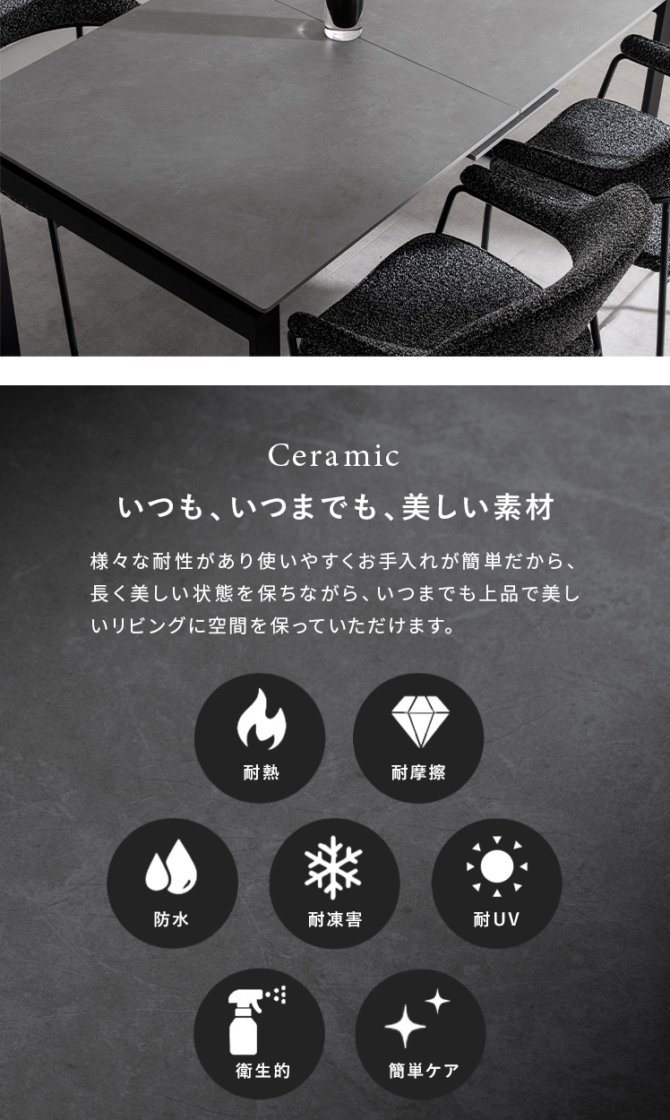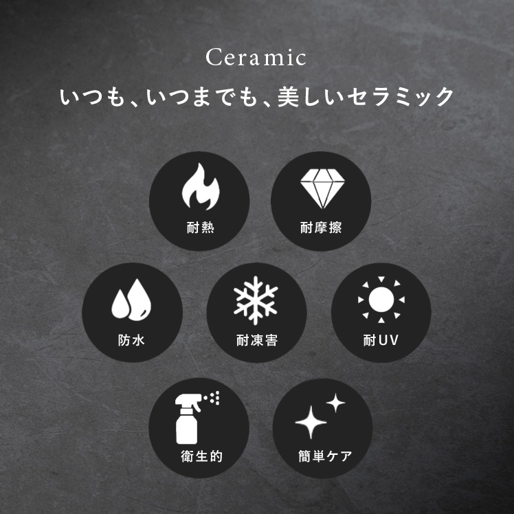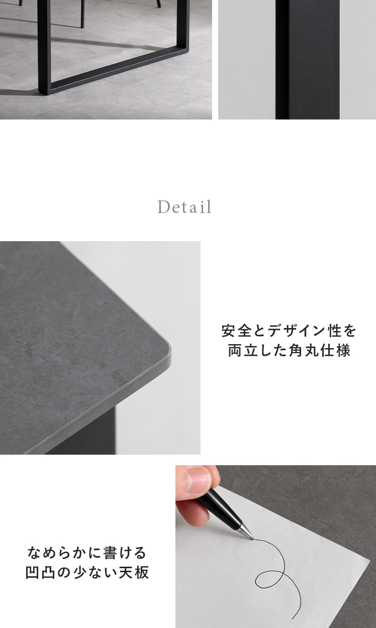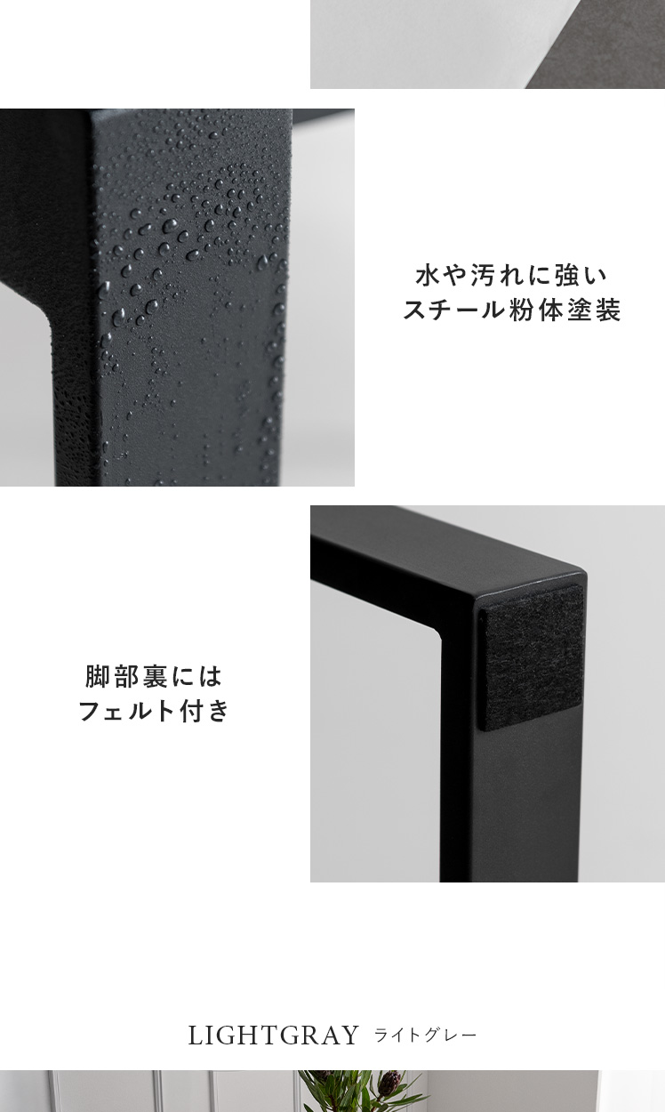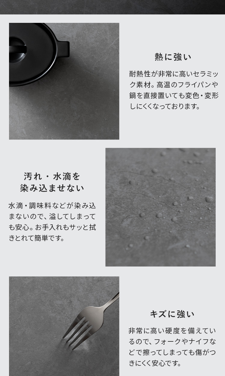 | 材質 | 天板/セラミック12mm、脚/アイアン(粉体塗装) |
