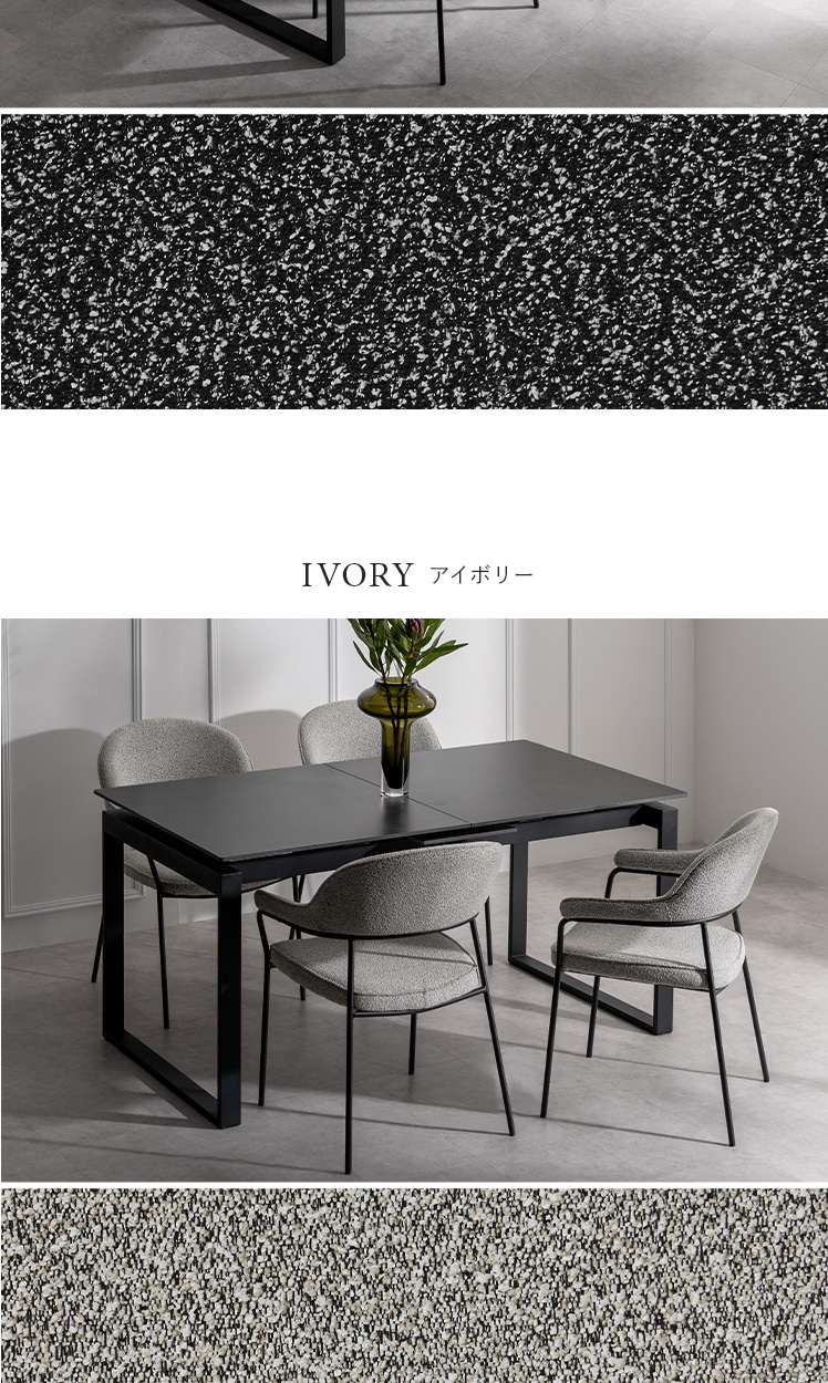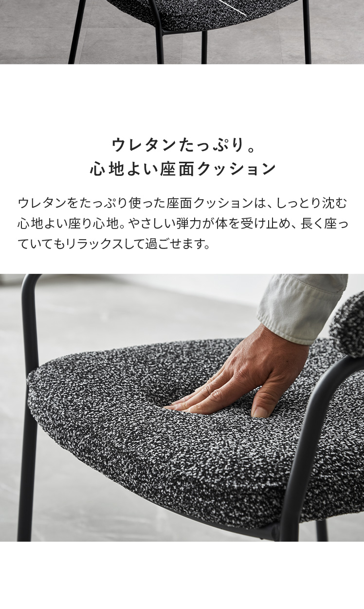 | 材質 | クッション材/ウレタン、張地/ブークレ調ファブリック、脚/アイアン |