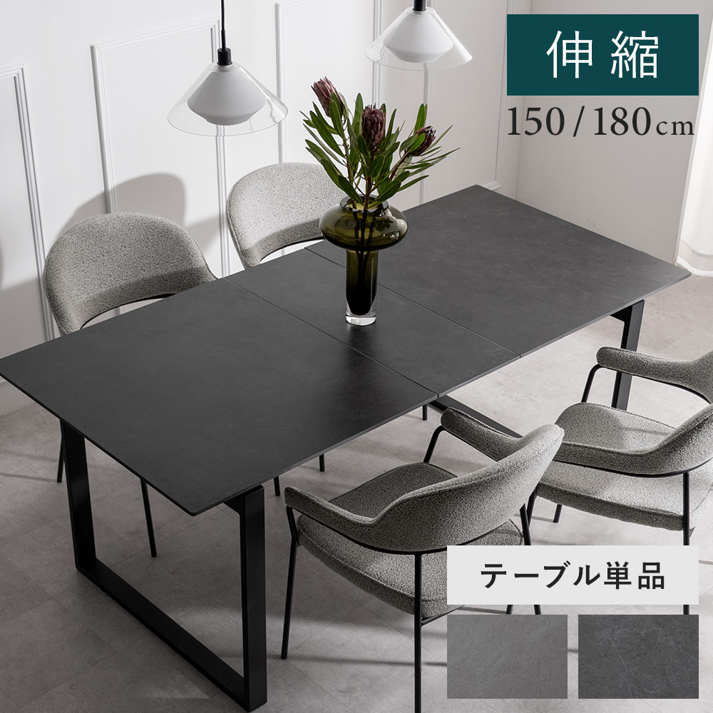 セラミック 食卓テーブル 伸縮 机 北欧 かわいい 180cm 4人掛け スチール脚