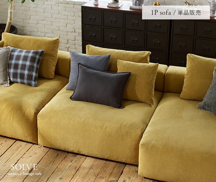ユニットソファ SOLVE〔ソルヴェ〕 1Pソファ/開放感あふれる低重心フォルムに、上質なコーデュロイのぬくもり。忙しい日常に贅沢なひとときをもたらす、くつろぎのための本格ソファです。