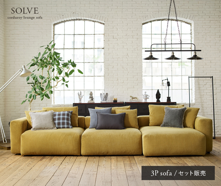 ユニットソファ SOLVE〔ソルヴェ〕 3点セット/開放感あふれる低重心フォルムに、上質なコーデュロイのぬくもり。忙しい日常に贅沢なひとときをもたらす、くつろぎのための本格ソファです。