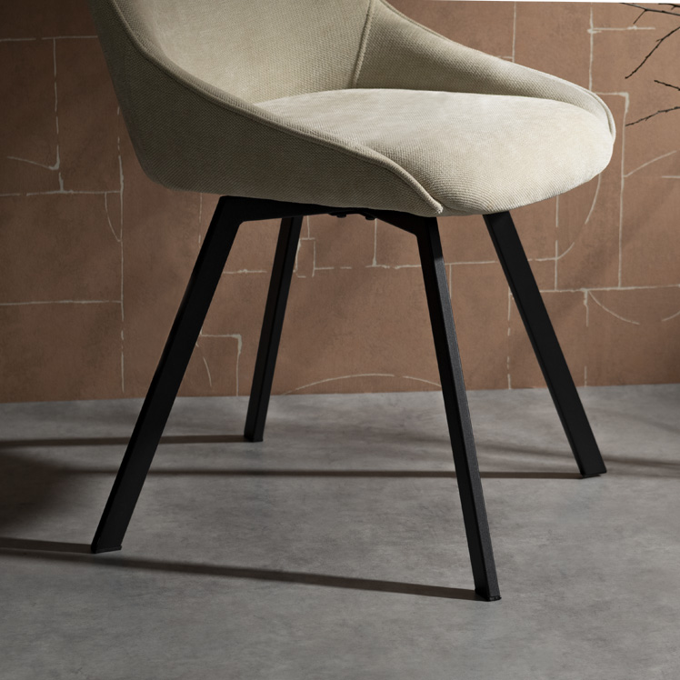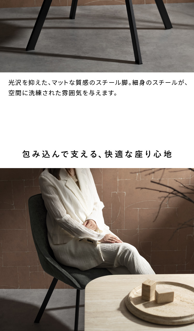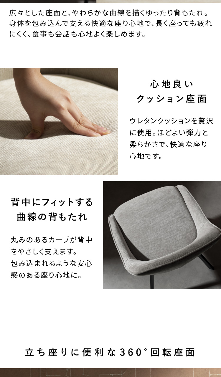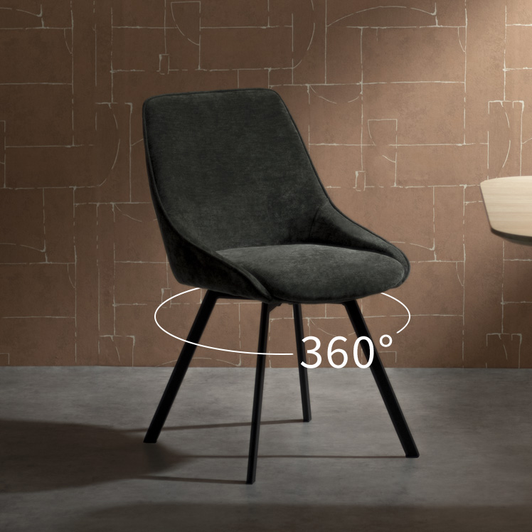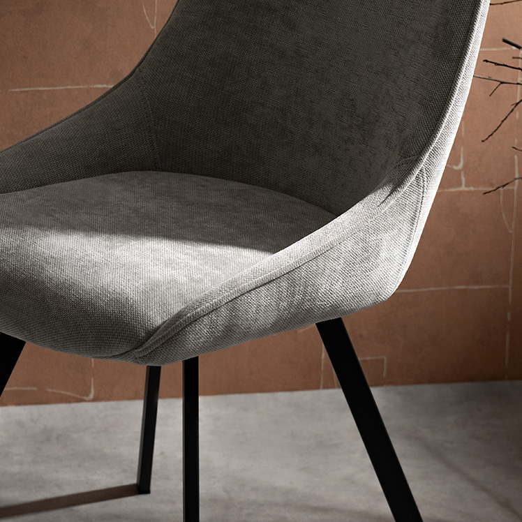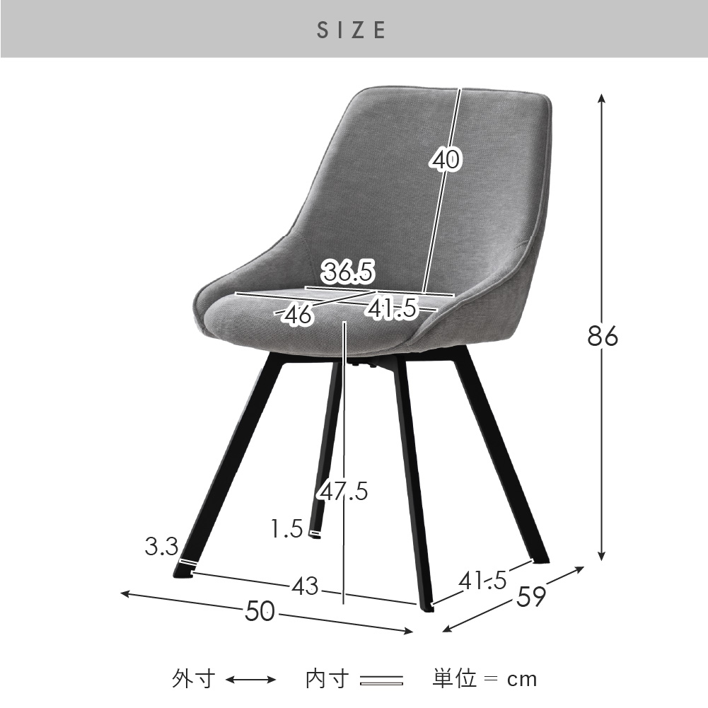 回転ダイニングチェア Hurst〔ハースト〕2脚セット/滑らかな曲線が美しい、ダイニングチェア『Hurst(ハースト)』。平織で繊細に仕上げたさらさらなファブリック生地とマットなブラックスチールの上質デザイン。身体を包み込む背もたれと、ゆったり座面の快適な座り心地。座面は360°の回転が可能で、立ち座りもスムーズ。毎日の食卓を、より優雅で心地よいひとときへと導きます。