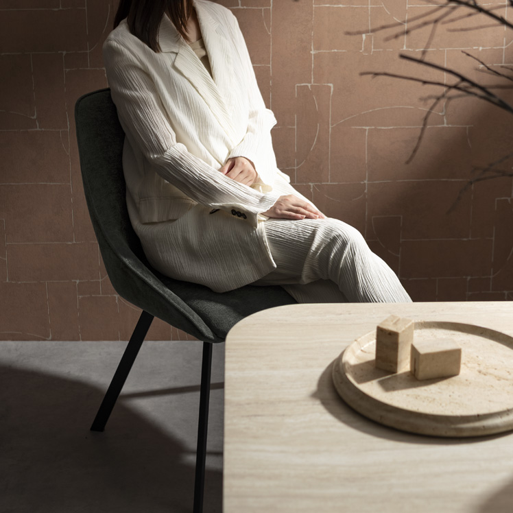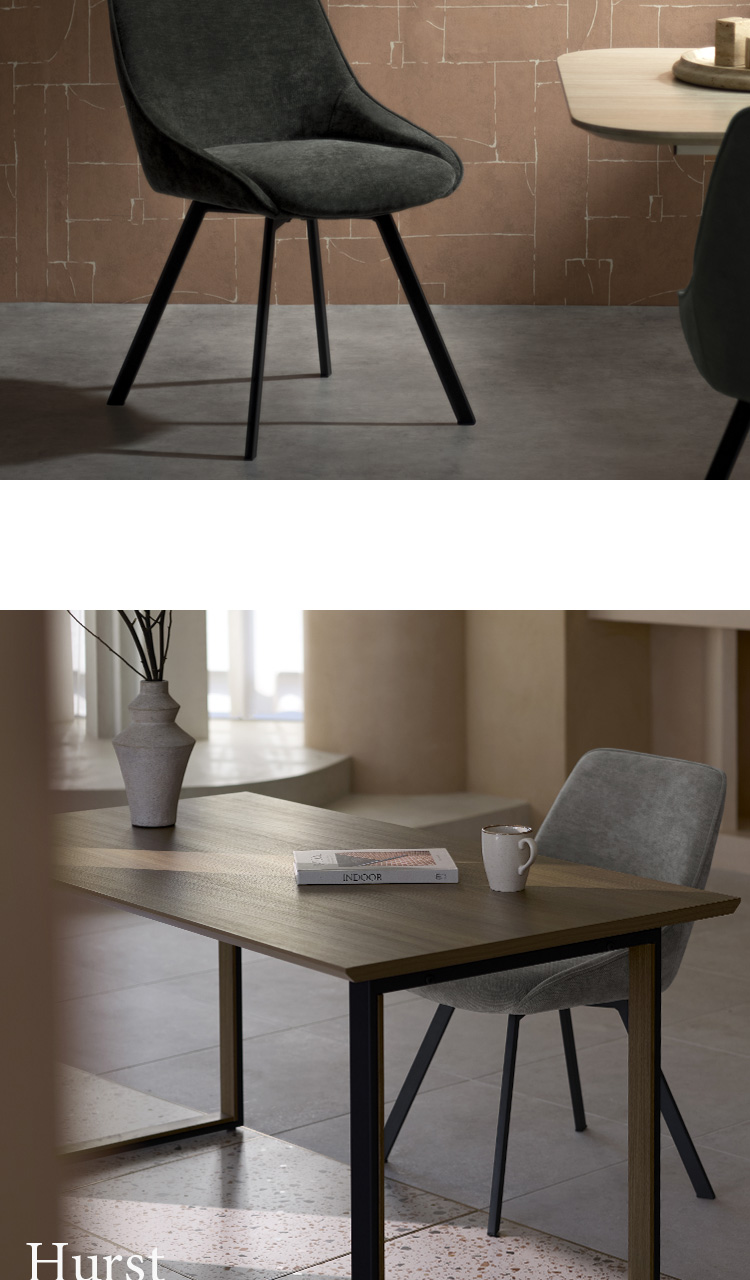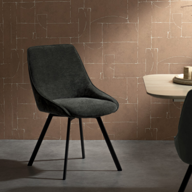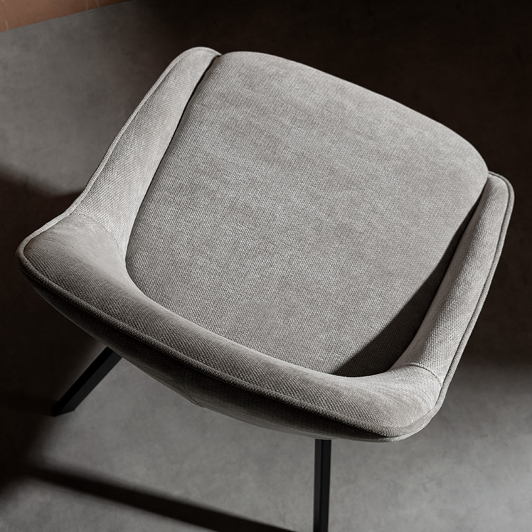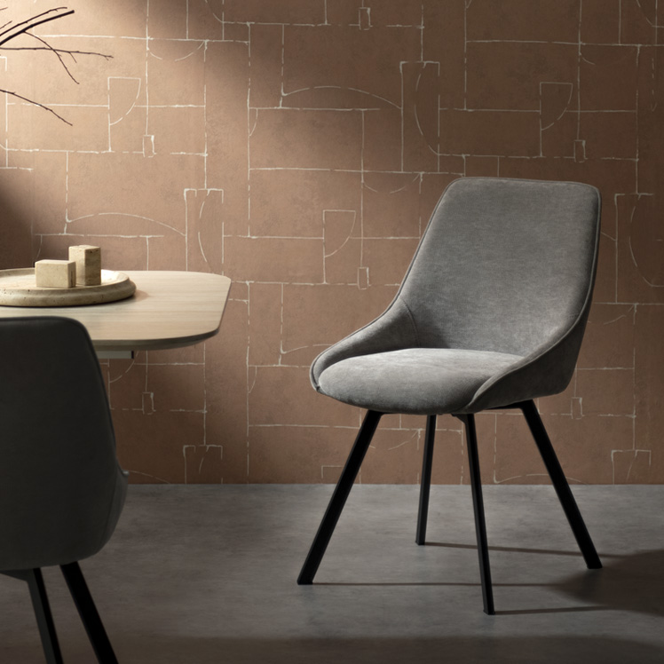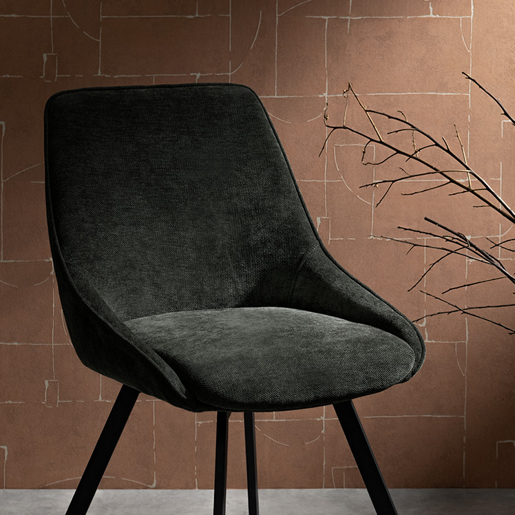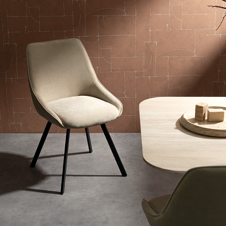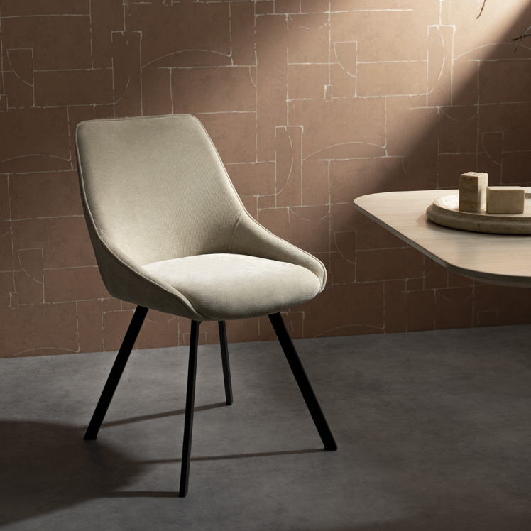 回転ダイニングチェア Hurst〔ハースト〕2脚セット/滑らかな曲線が美しい、ダイニングチェア『Hurst(ハースト)』。平織で繊細に仕上げたさらさらなファブリック生地とマットなブラックスチールの上質デザイン。身体を包み込む背もたれと、ゆったり座面の快適な座り心地。座面は360°の回転が可能で、立ち座りもスムーズ。毎日の食卓を、より優雅で心地よいひとときへと導きます。
