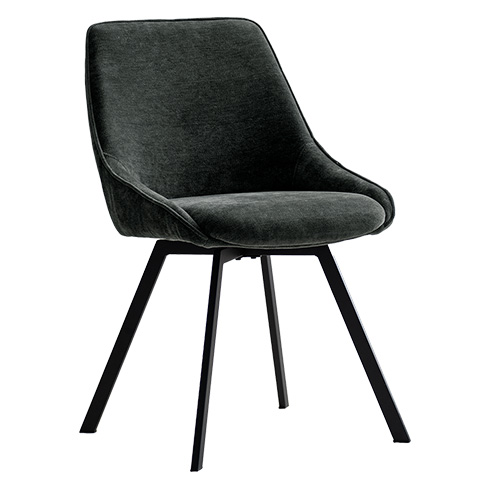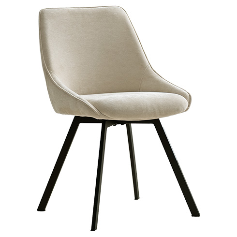 回転ダイニングチェア Hurst〔ハースト〕1脚単体/滑らかな曲線が美しい、ダイニングチェア『Hurst(ハースト)』。平織で繊細に仕上げたさらさらなファブリック生地とマットなブラックスチールの上質デザイン。身体を包み込む背もたれと、ゆったり座面の快適な座り心地。座面は360°の回転が可能で、立ち座りもスムーズ。毎日の食卓を、より優雅で心地よいひとときへと導きます。