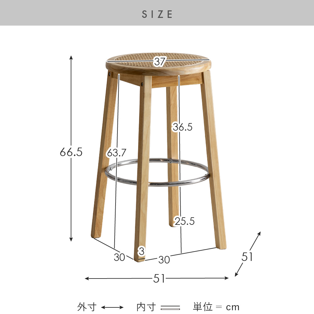 | サイズ | 約幅51×奥行き51×高さ66.5cm |