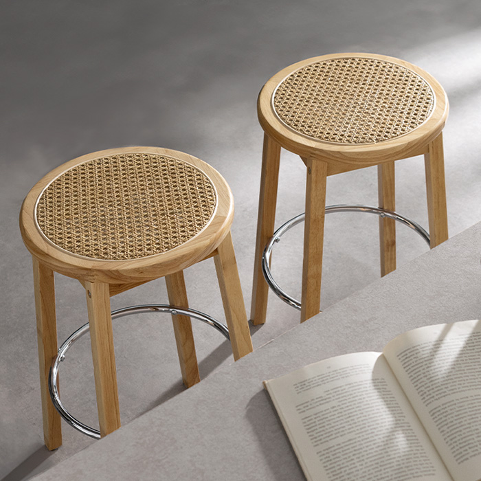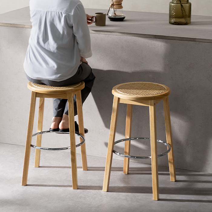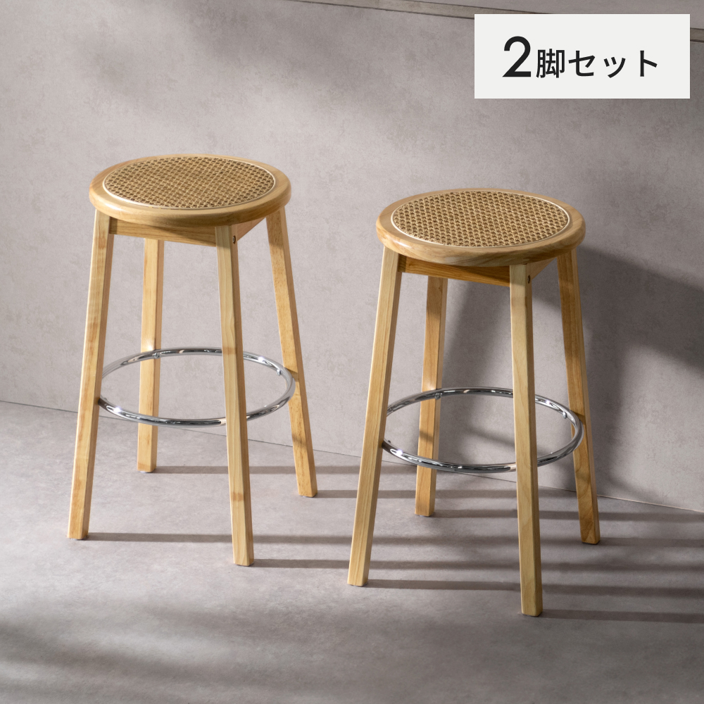ラタンバーチェア Elmie〔エルミー〕2脚セット/ラタン×天然木×メッキの素材感が生み出す、あたたかく軽やかな佇まいのバーチェア。 しなやかな座り心地と使いやすい高さ設計で、くつろぎを快適にサポートします。ご自宅はもちろんカフェなどの店舗にもぴったりです。