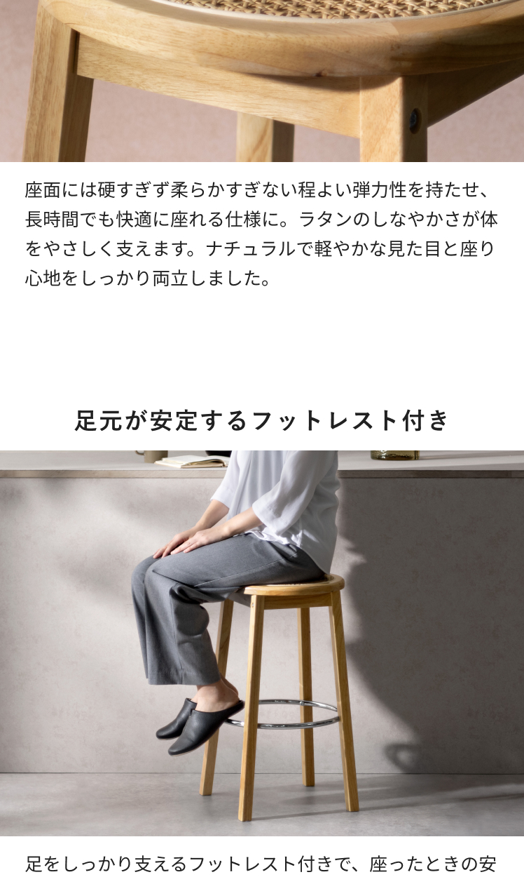 カウンターチェア ハイチェア 天然木 木目 フットレスト付き 店舗 カフェ アジアン シンプル ナチュラル【5%OFFクーポン対象|公式なら毎日お得】