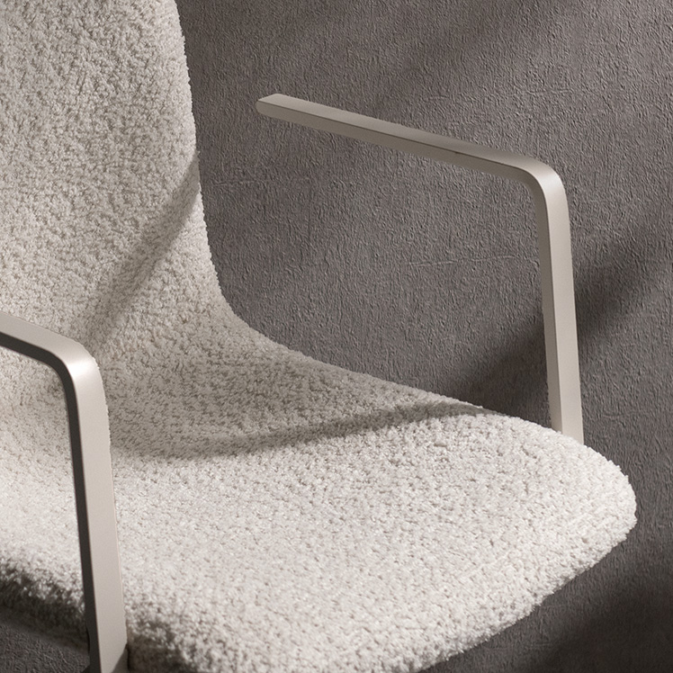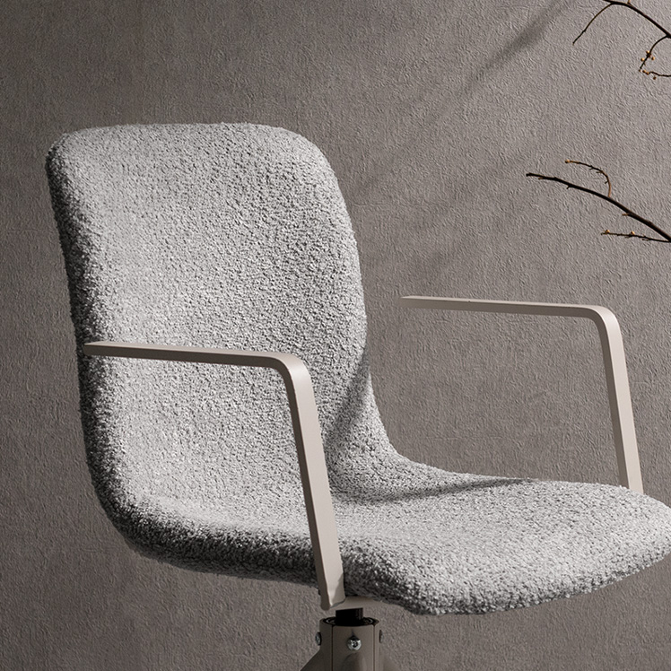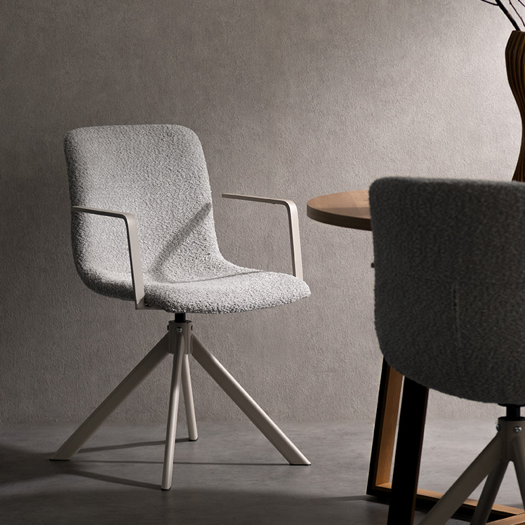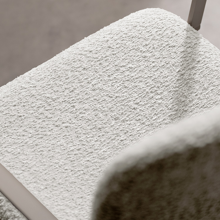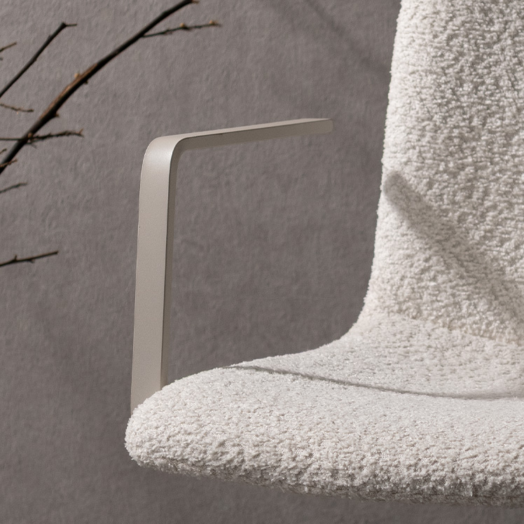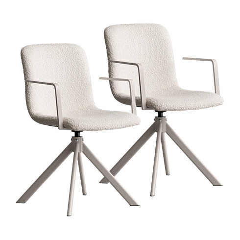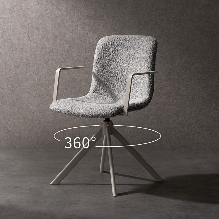 回転ダイニングチェア2脚入り Stead〔ステッド〕2脚セット/シャープなアームが美しい、ダイニングチェア『Stead(ステッド)』。光の角度によって表情を変えるブークレ生地と直線的なアームレストが、空間に上質で、モダンな印象を与えます。身体をフィットする背もたれと、ゆったり座面の快適な座り心地。座面は360°の回転が可能で、立ち座りもスムーズ。毎日の食卓を、より優雅で心地よいひとときへと導きます。