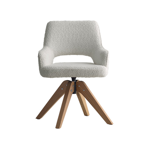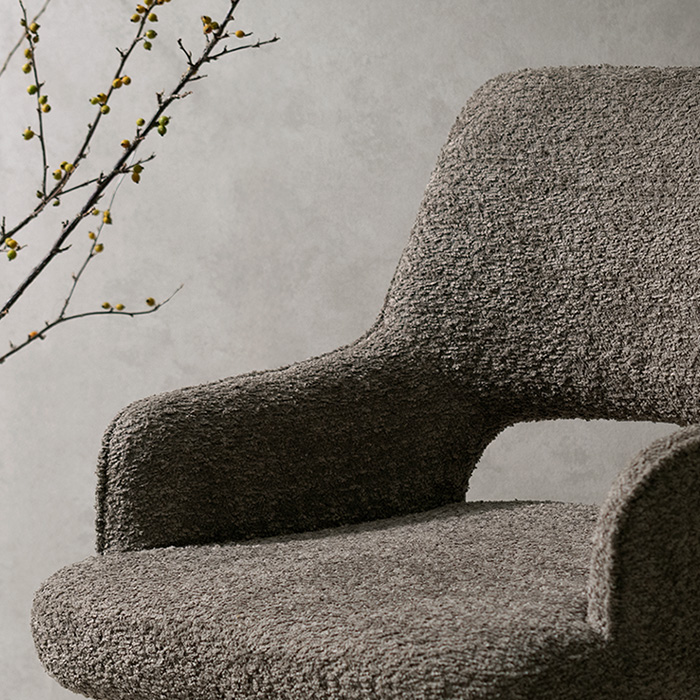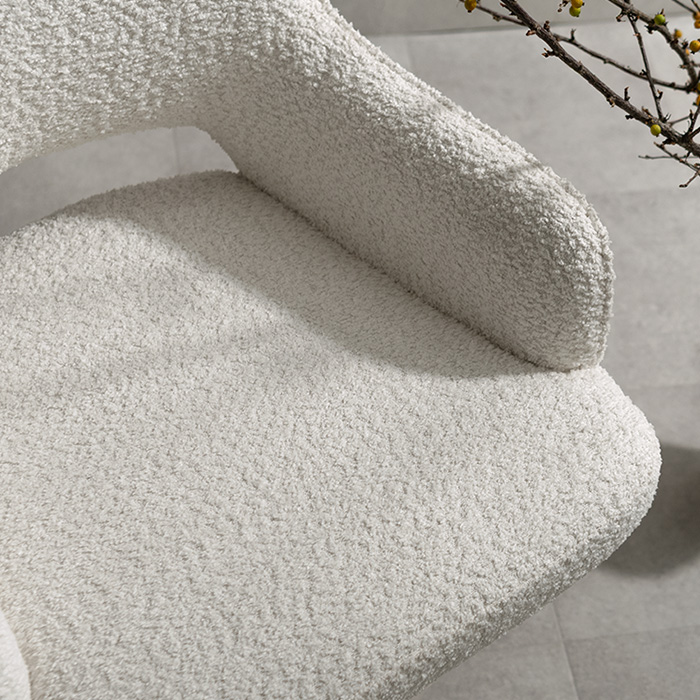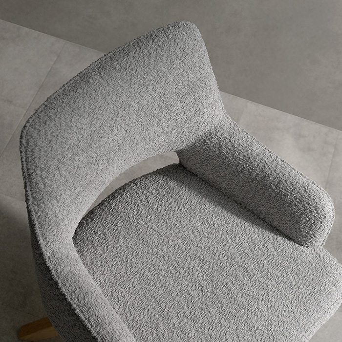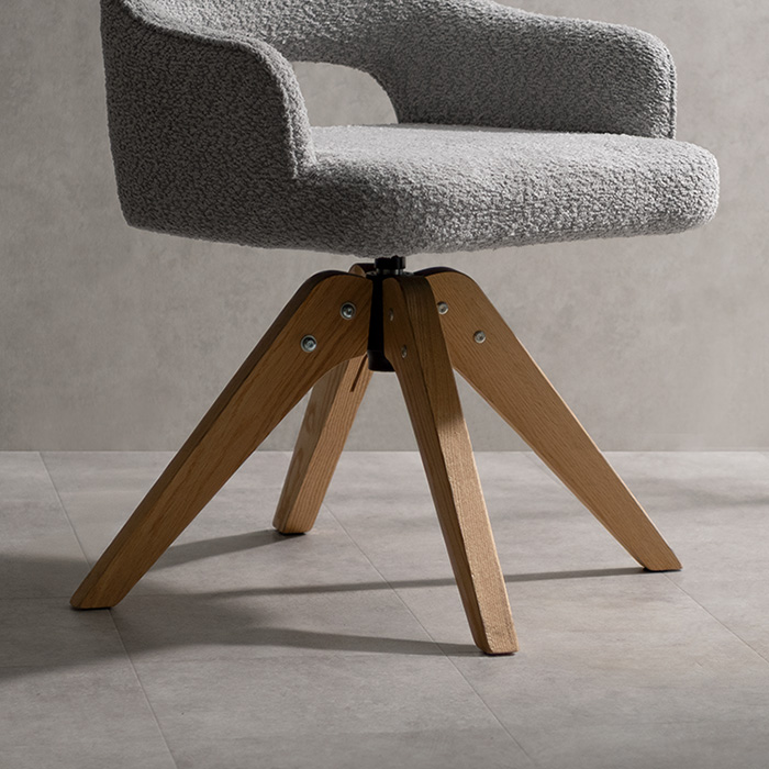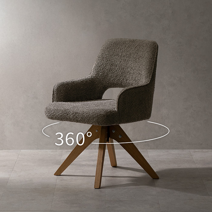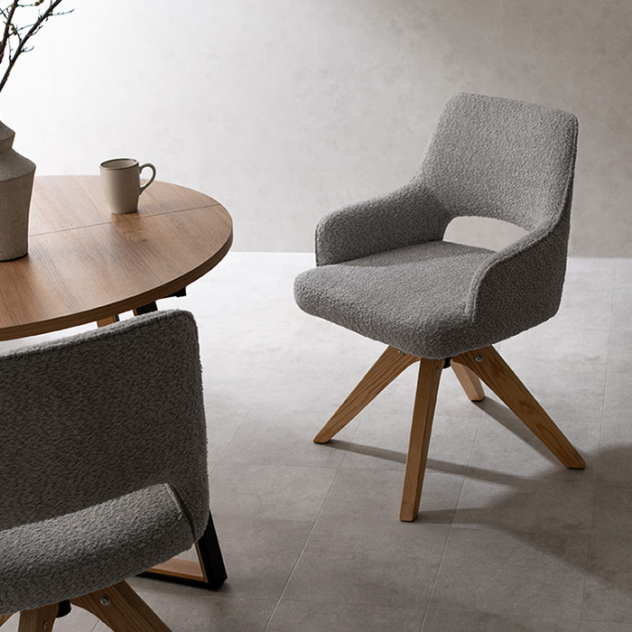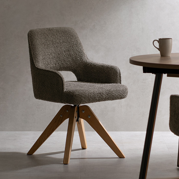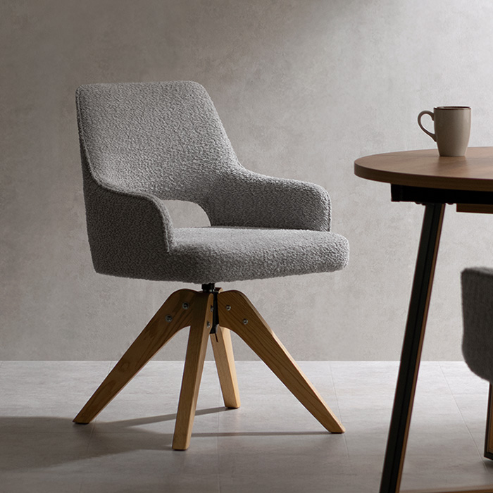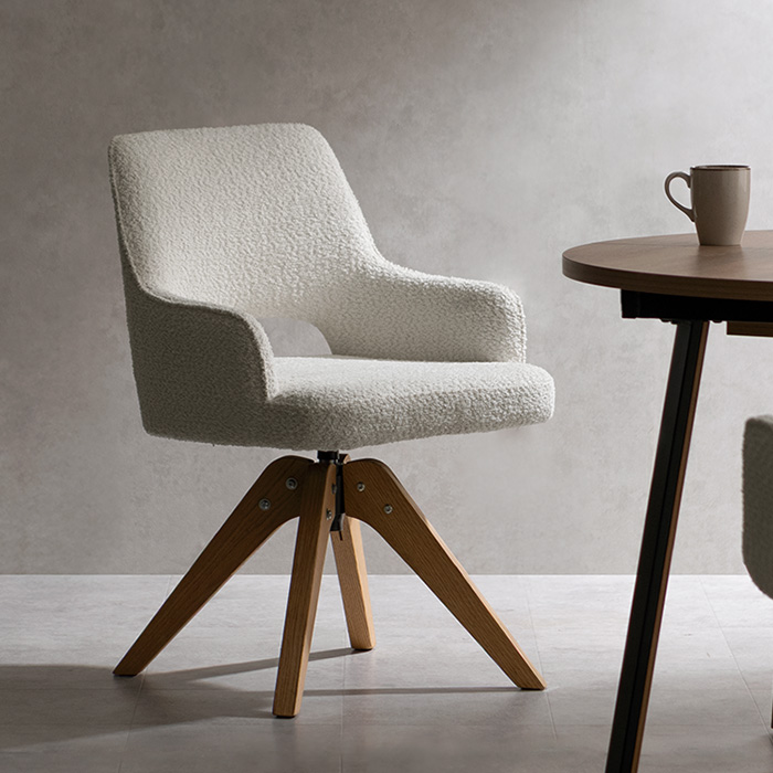 チェア デスクチェア ダイニングチェア 椅子 いす モダン 天然木 オーク材 ブークレ ブークレ生地 ポケットコイル アームレスト ウレタン 肘掛け 360°回転 回転座面 クッション座面 シンプル おしゃれ ナチュラル 北欧 韓国 オフホワイト 白 グレー ブラウン
