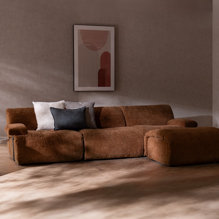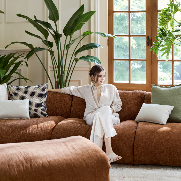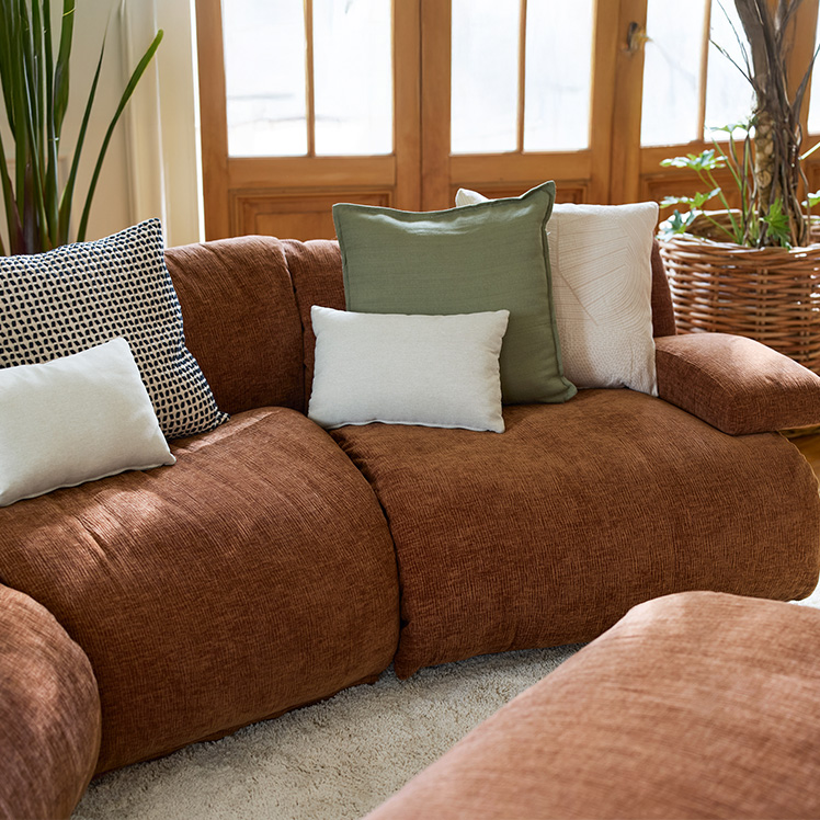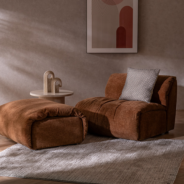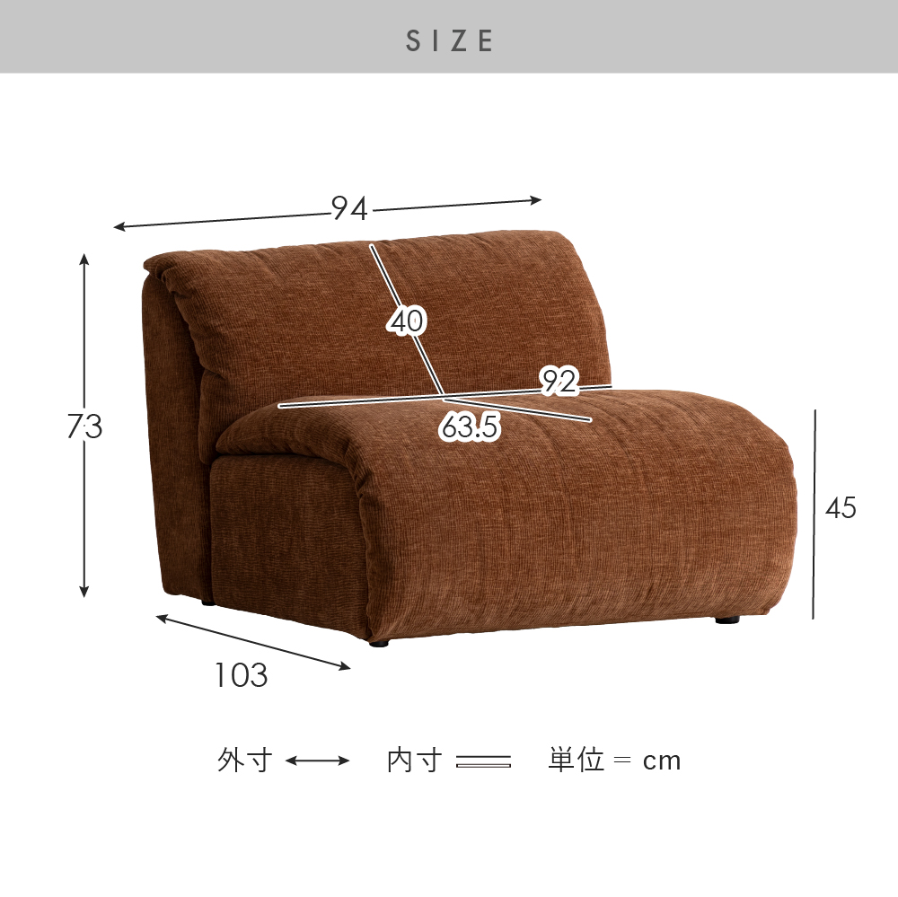 AVENIR〔アヴニール〕 アームレス1Pソファ/開放感あふれる低重心フォルムに、上質なシェニール生地の光沢。忙しい日常に贅沢なひとときをもたらす、くつろぎのための本格ソファです。
