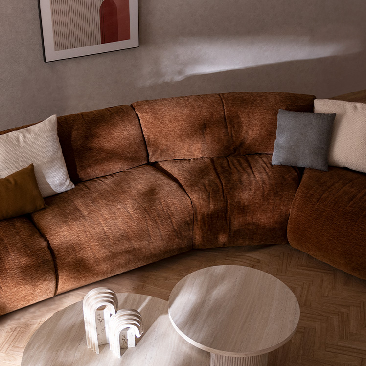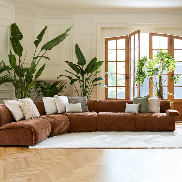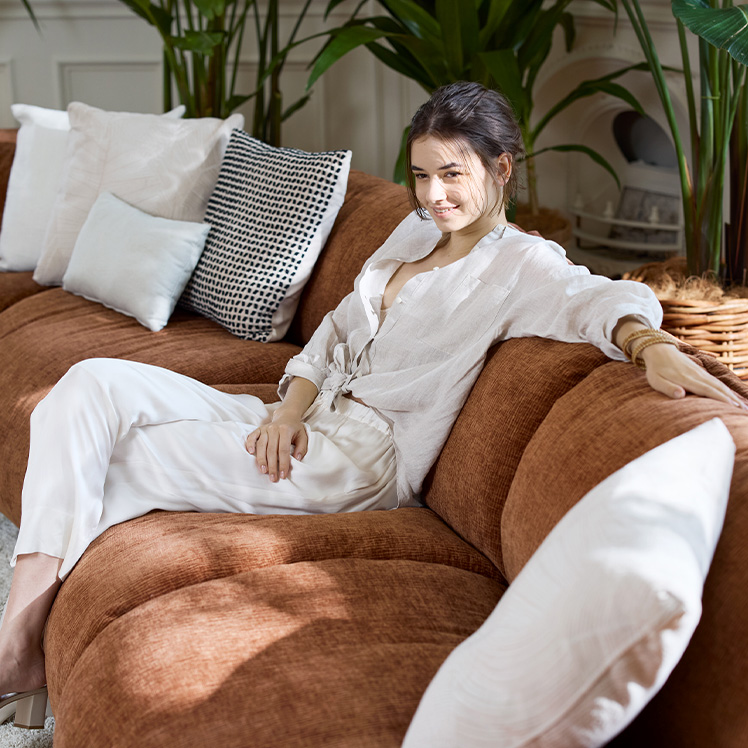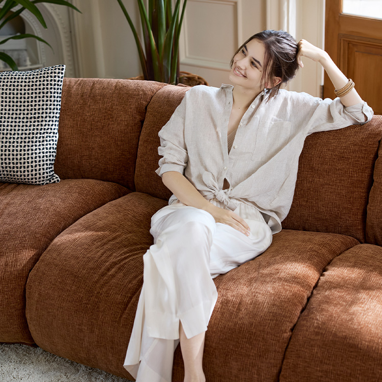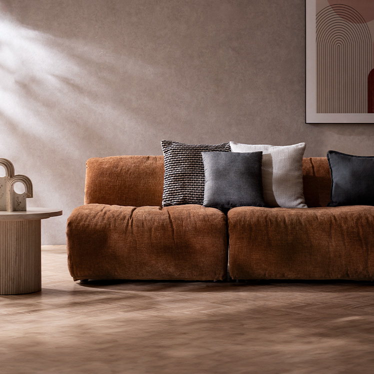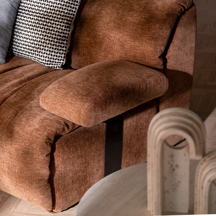 AVENIR〔アヴニール〕 アームレス1Pソファ/開放感あふれる低重心フォルムに、上質なシェニール生地の光沢。忙しい日常に贅沢なひとときをもたらす、くつろぎのための本格ソファです。