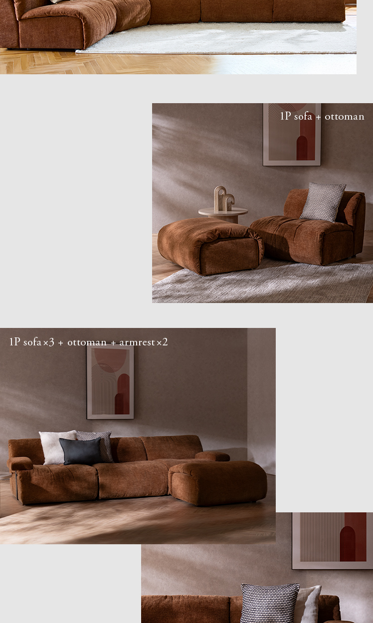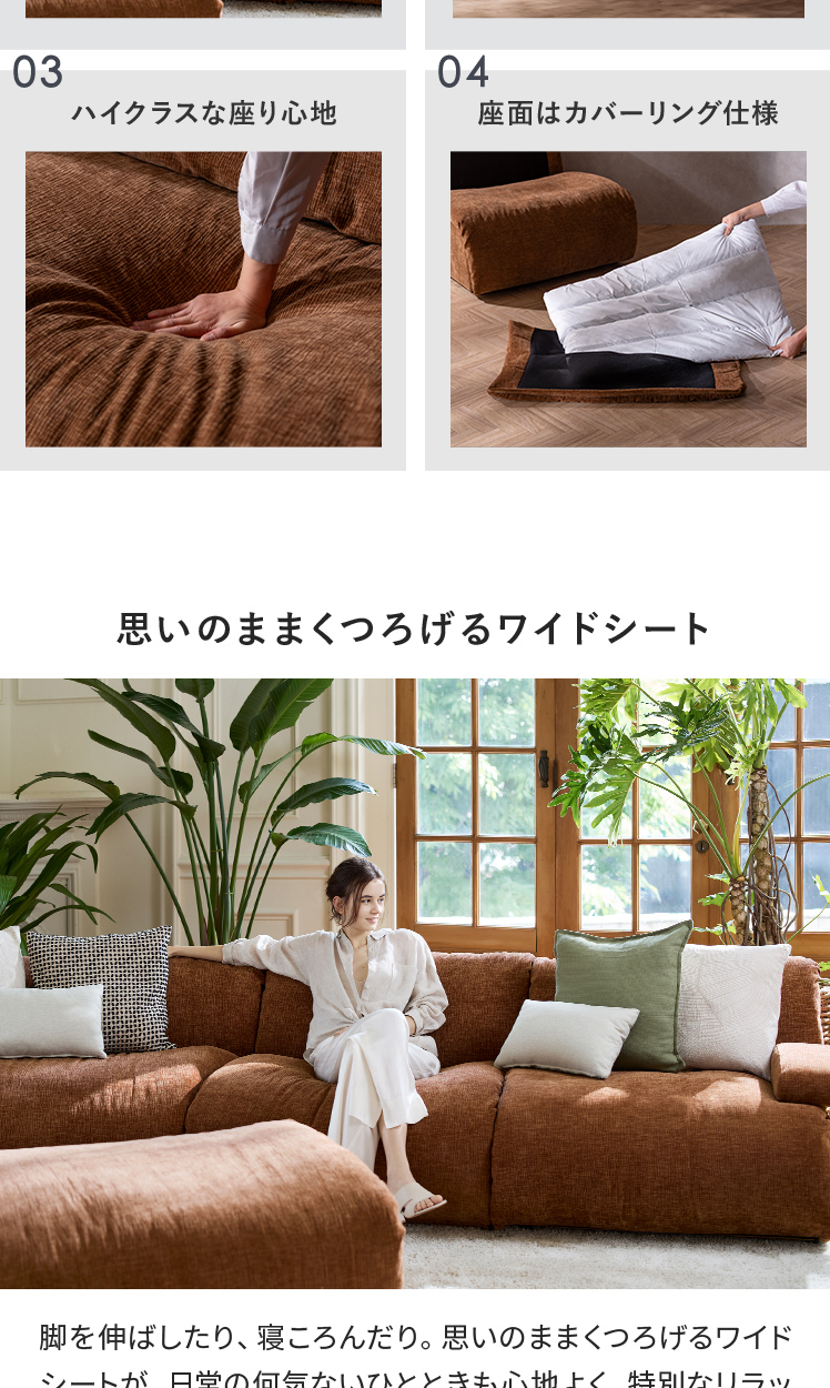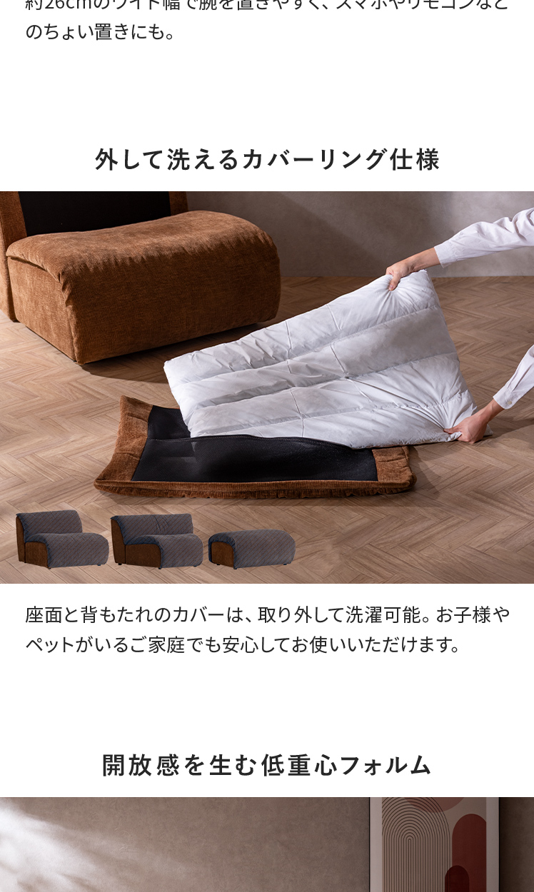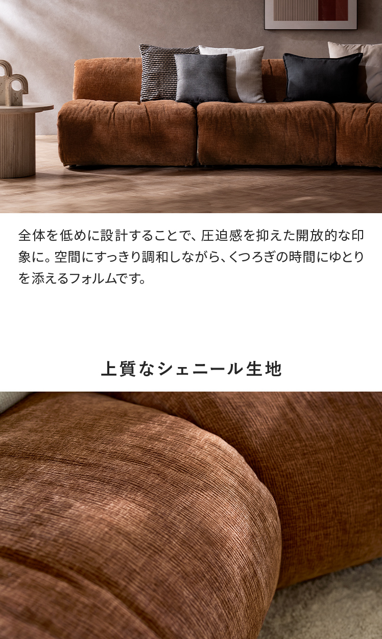 組み合わせ 1Pソファ シェニール生地 テラコッタ ワイドシート 洗える ローソファ 広々座面 アームレス ホテル風 ブラウン【5%OFFクーポン対象|公式なら毎日お得】