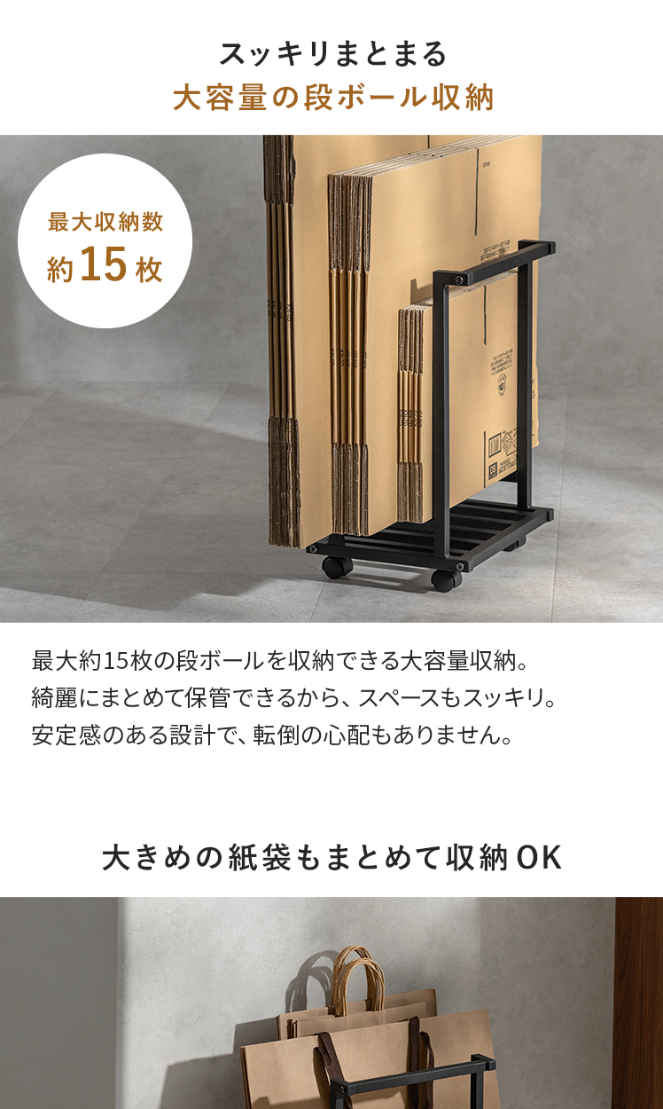 段ボールストッカー 段ボール収納 ダンボール置き 紙袋ストッカー 移動らくらく 持ち運び ワゴン