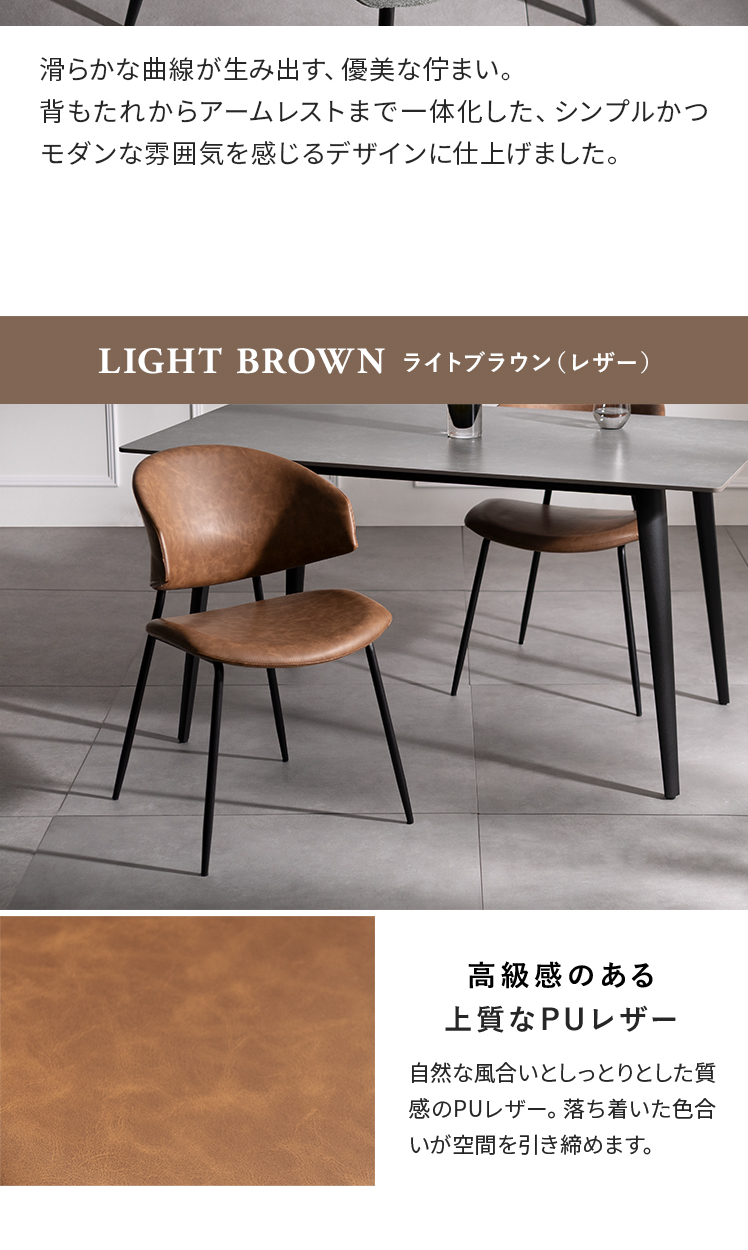 ダイニングチェア 2脚セット 北欧 クッション 椅子 食卓 おしゃれ レザー アームレスト ブークレ インテリア リビングチェア いす チェアー チェア アンティーク スチール カフェ モダン ヴィンテージ PUレザー スチール脚 軽量 ライトブラウン グレー
