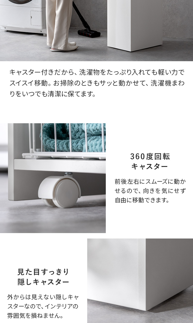 カゴ付き 2段 ランドリーワゴン キャスター付き 洗濯かご 大容量 脱衣かご シンプル 洗濯物入れ タオルハンガー 天板付き 目隠し デッドスペース 省スペース ランドリーラック ランドリー収納 スチール 持ち手付き 北欧 白 ホワイト【最大7%OFFクーポン対象|公式なら毎日お得】