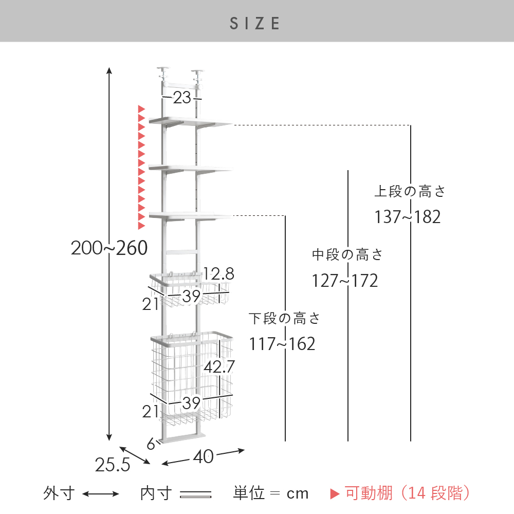 | サイズ | 約幅40×奥行き25.5×高さ200〜260cm |