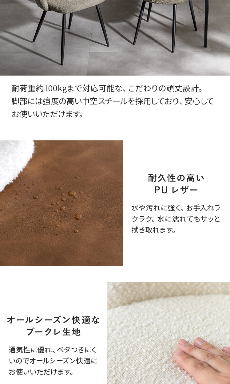 | 材質 | クッション材:ウレタンフォーム、張地:ブークレ/ポリエステル |