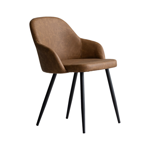 ハーフアーム付きダイニングチェア ORLVE〔オルブ〕 レザータイプ1脚単品販売/立ち座りしやすい、アーム付きダイニングチェア“ORLVE(オルヴ)”豊かな表情の曲線が美しいシェル形のシルエット。洗練されたデザインで、憧れのホテルライクな空間を演出します。滑らかな曲線を描く背もたれが、身体を包み込んで支えます。