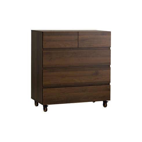 キャスター付き 大容量チェスト Elva〔エルヴァ〕/キャスター付き大容量チェスト“Elva(エルヴァ)”2杯の小さな引出しと、3杯の大きな引出しの豊富な収納。生活感を隠して、洋服や小物類を収納していただけます。模様替えや掃除の際も移動がしやすく快適です。