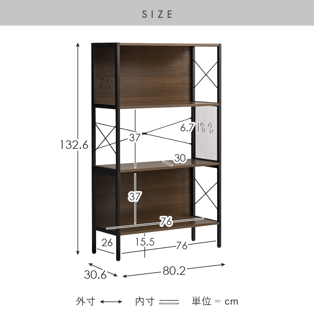 | サイズ | 約幅80.2×奥行き30.6×高さ132.6cm |