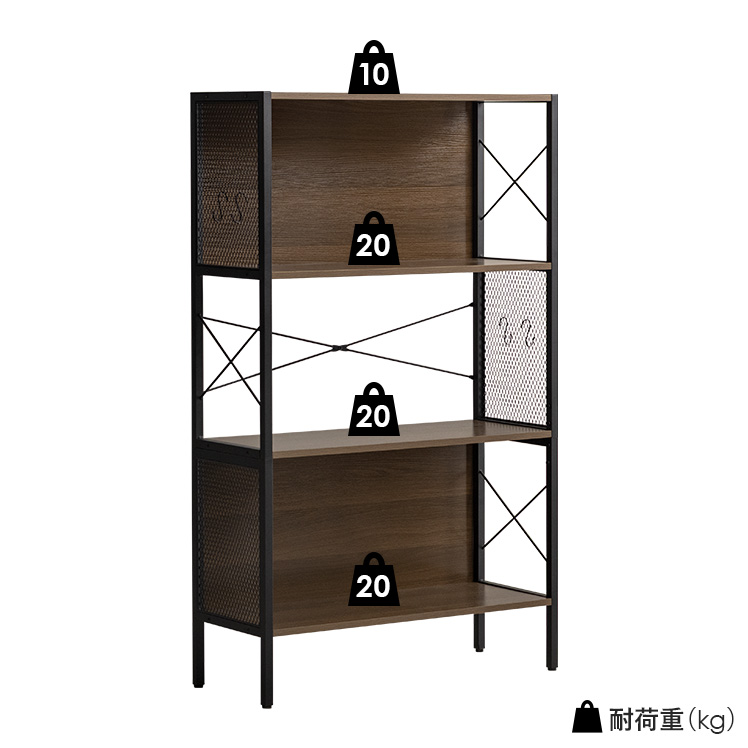 | 耐荷重 | 天板/10kg、棚板/各20kg、フック/各1.5kg |
