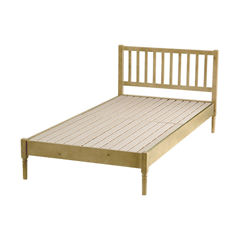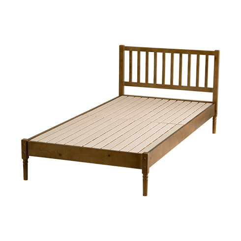 ナチュラルクラシックなベッド Oakly〔オークリー〕ベッドフレーム単体販売/天然木の落ち着いた風合いと縦格子のクラシカルなフレームが、お部屋を一気に憧れのアンティーク空間へと引き上げるシングルベッド。 通気性の良いすのこ仕様で、見た目だけでなく使い心地にもこだわった一台です。