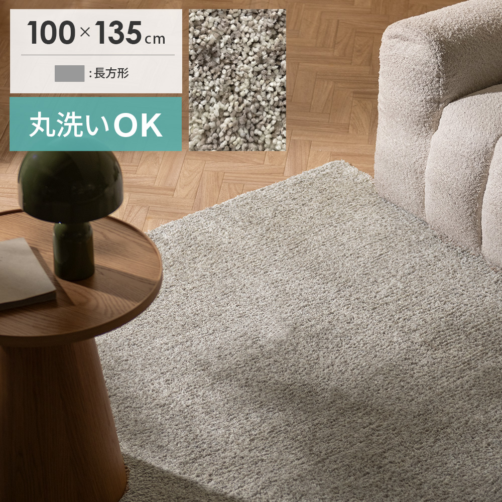 [100x135/長方形] 洗えるマイクロファイバーシャギーラグ