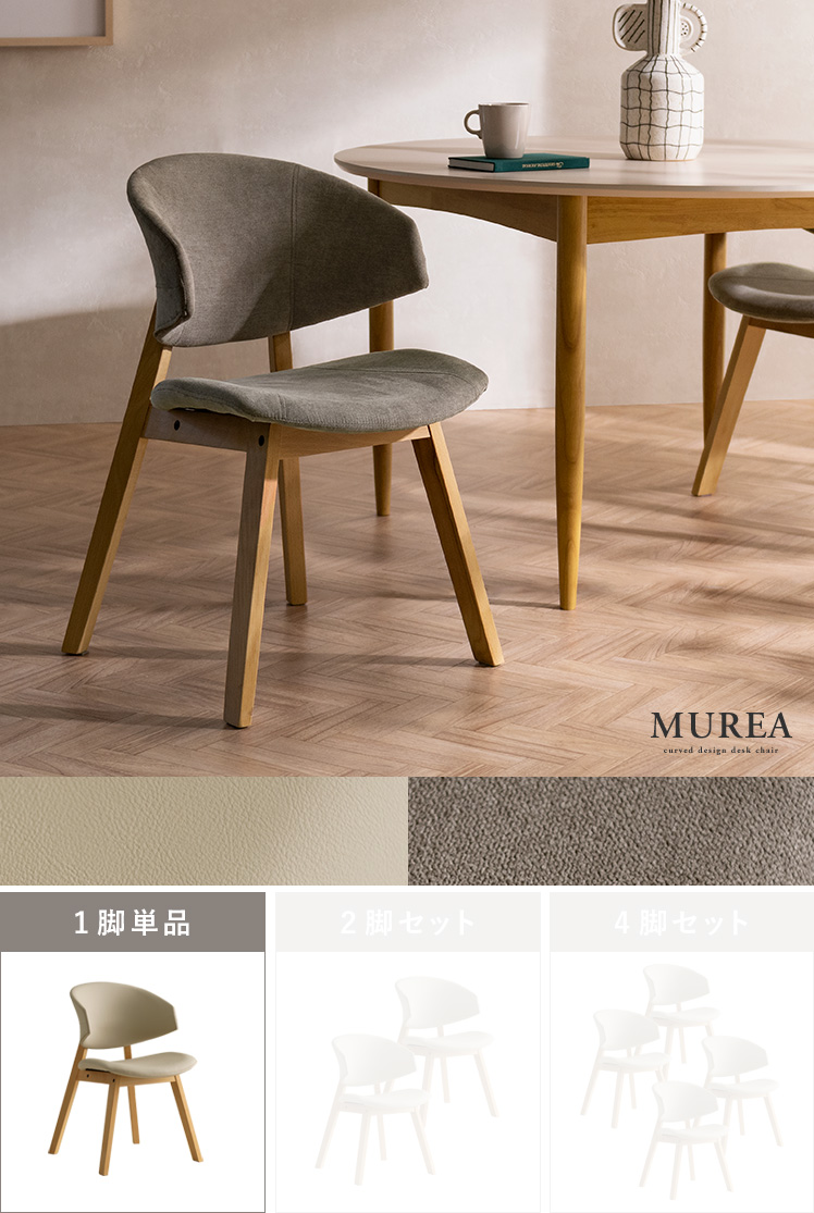 ダイニングチェア MUREA〔ミュレア〕 1脚単品販売/掛けて浮かせられるダイニングチェア“MUREA(ミュレア)” 床掃除がしやすく、毎日の家事をスムーズにしてくれます。曲線フォルムとあたたかな天然木脚が美しいデザイン。身体を深く預けられるので、長く座っても疲れにくい設計です。
