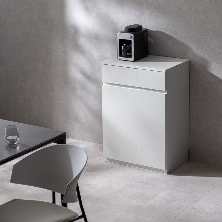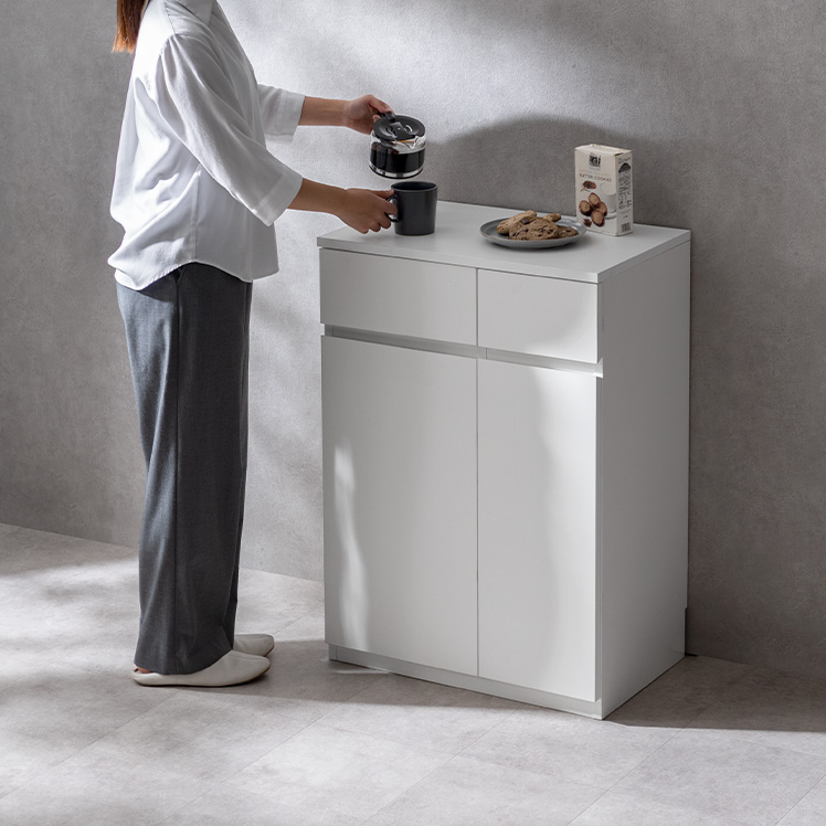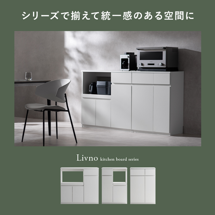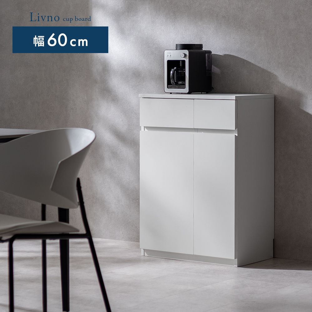 コンパクトキッチンキャビネット Livno〔リヴノ〕 幅60cm/家電や食器、こまごましたキッチン小物も、この一台にまとめて収納。幅60cmのコンパクトなサイズ感で、キッチンをすっきり整えます。