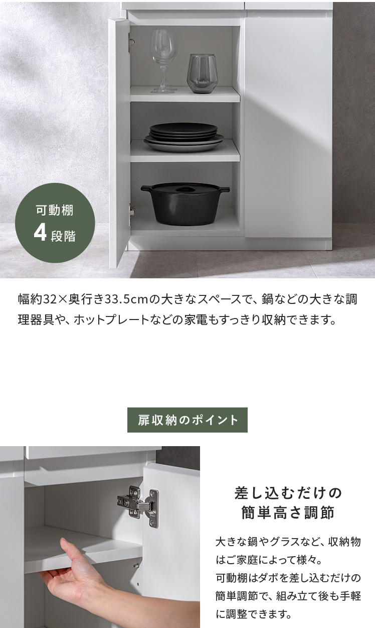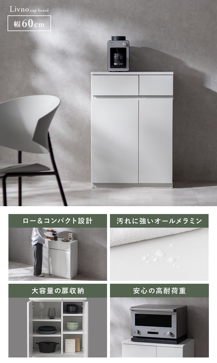 キッチンボード 食器棚 カップボード レンジ台 キッチン収納 シンプル おしゃれ ロータイプ ホワイト 【5%OFFクーポン対象|公式なら毎日お得】【1/26(月)正午までクリアランスセール対象】