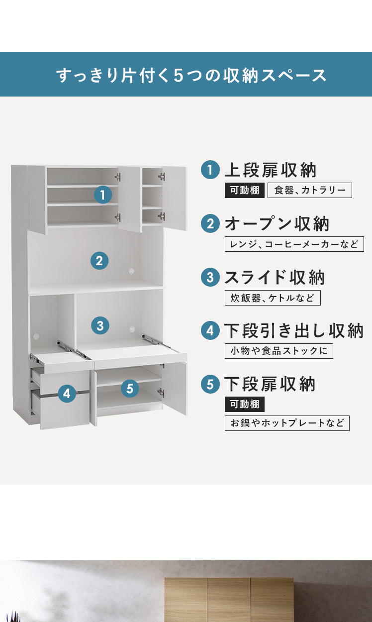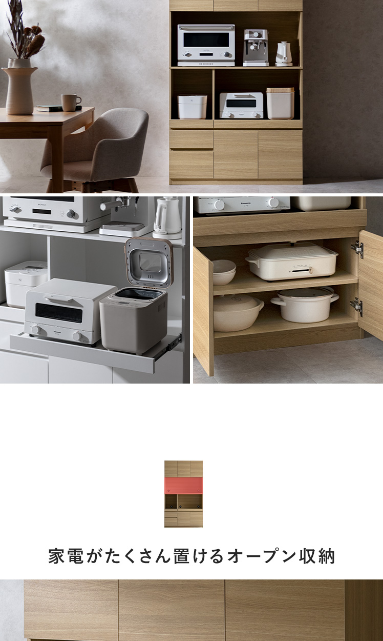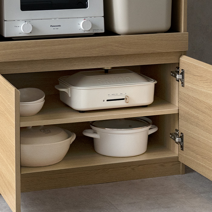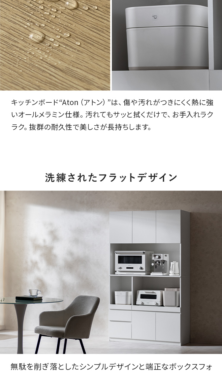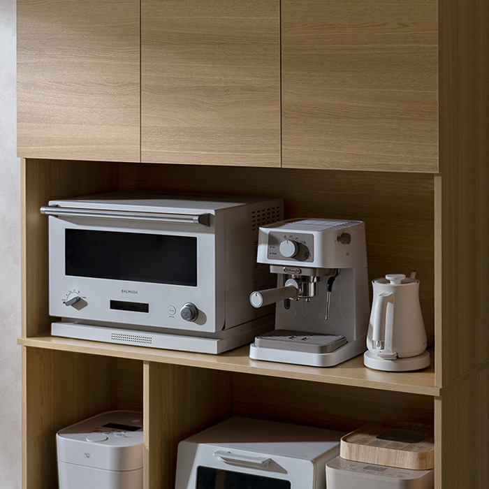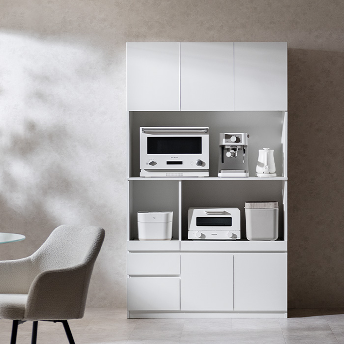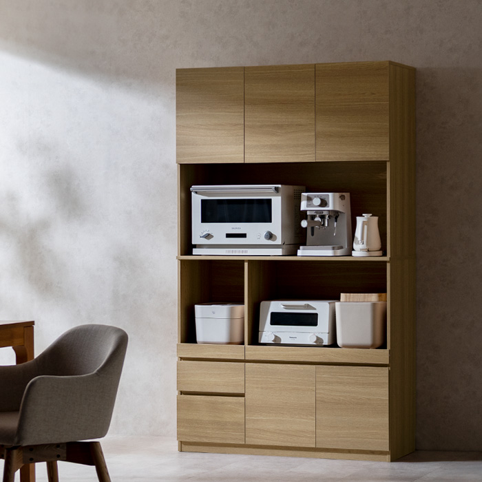 家電がたくさん置けるキッチンラック Aton〔アトン〕幅105cm/増えていく家電をまるっとまとめて収納できるキッチンラック“Aton(アトン)”。幅105cmのまま収納力をしっかり広げ、よく使う家電も無理なく定位置に。キッチンがすっきりまとまり、毎日の家事がもっとスムーズで心地よくなります。