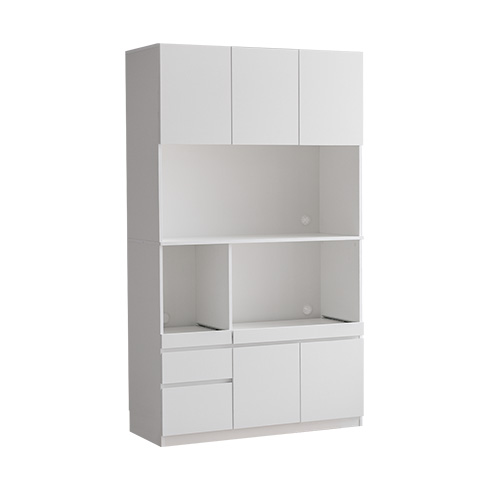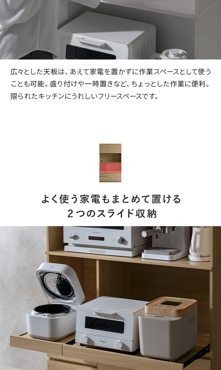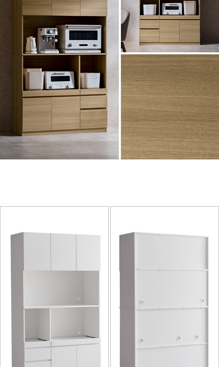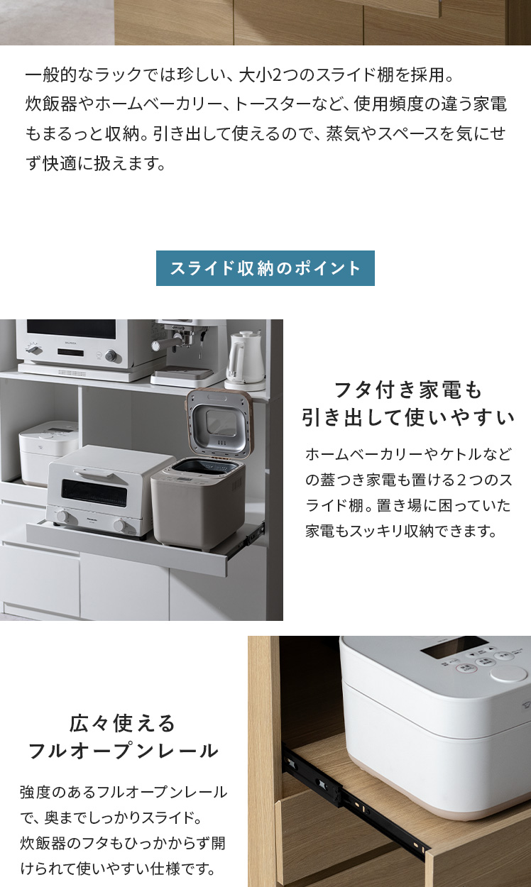 食器棚 カップボード キッチンボード ラック 棚 大容量 スライドトレー 作業台 キッチンキャビネット キッチンラック キッチン収納 キッチンシェルフ キッチン作業台 食器棚 レンジ棚 レンジ台 木目調 メラミン素材 シンプル モダン 北欧 ホワイト ナチュラル
