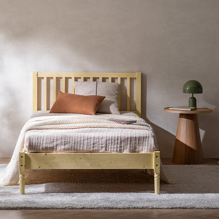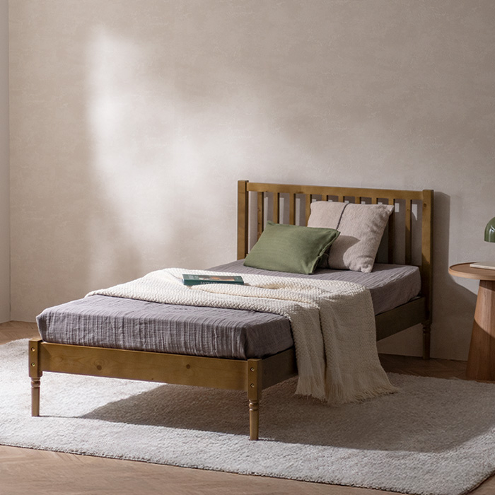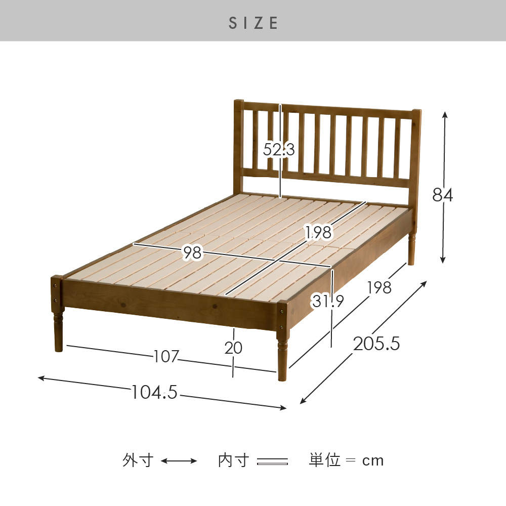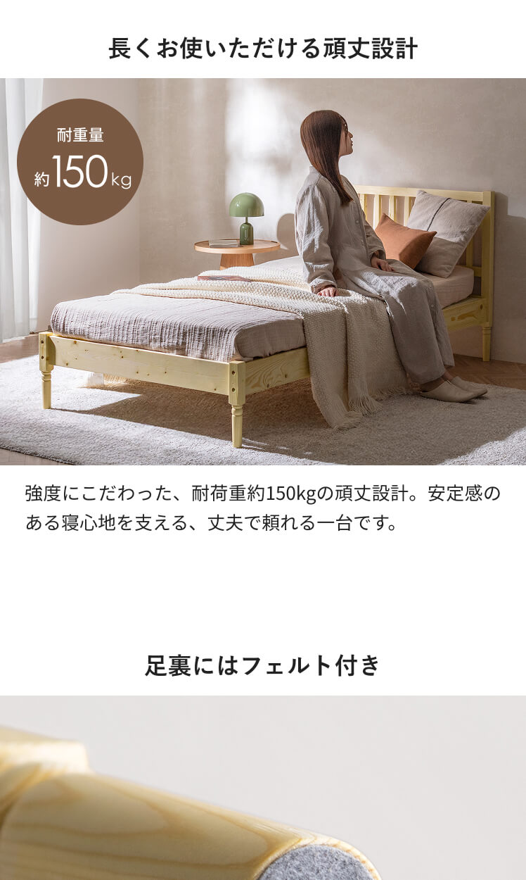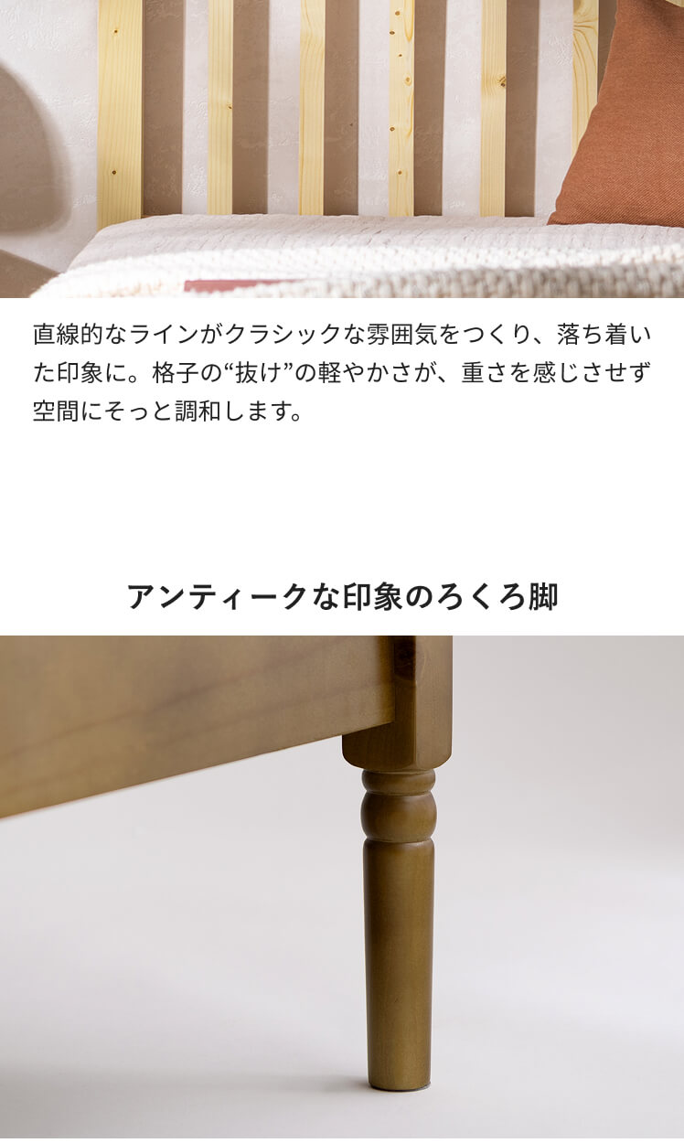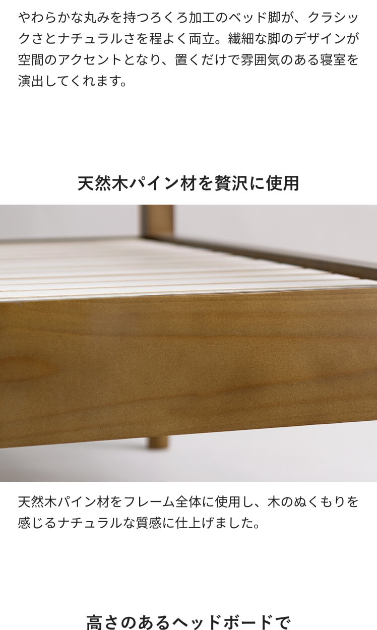 ベッド シングルベッド ベッドフレーム ローベッド クラシック シック アンティーク ヘッドボード すのこ すのこベッド 木製ベッド ステージベッド フロアベッド シングル シンプル 木目調 天然木 パイン材 おしゃれ 北欧 モダン ブラウン ろくろ脚 フェルト付き ナチュラル 収納 フラットデザイン 湿気対策 カビ対策