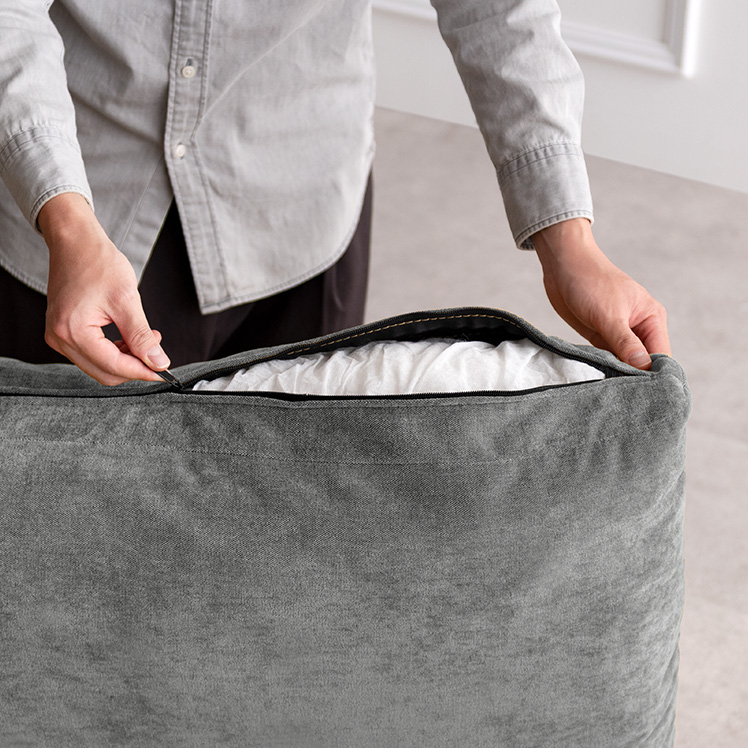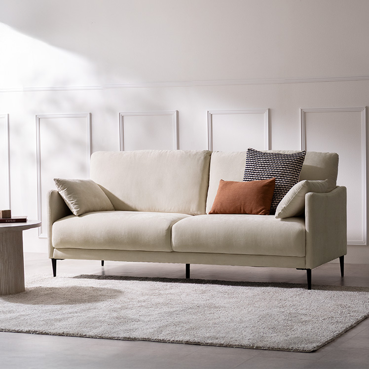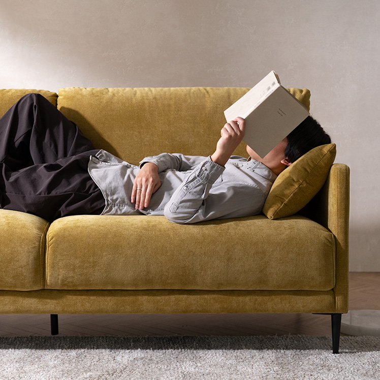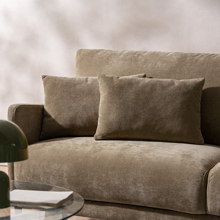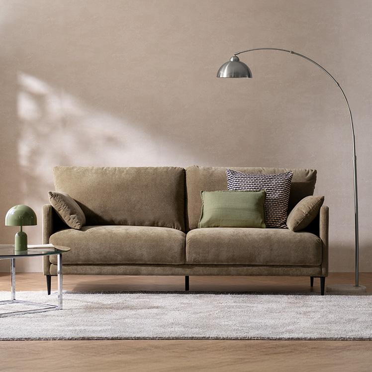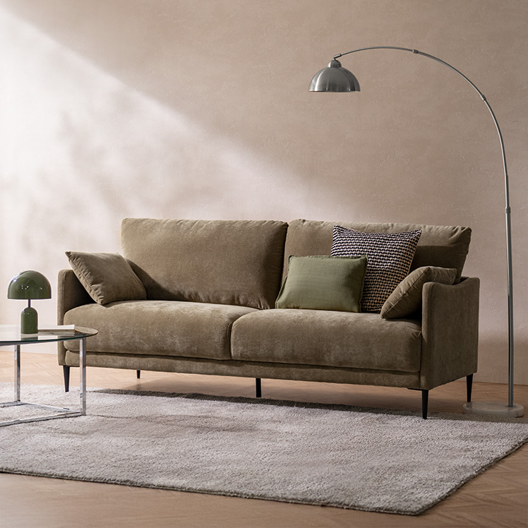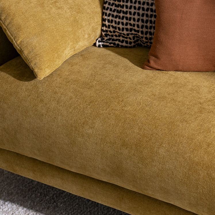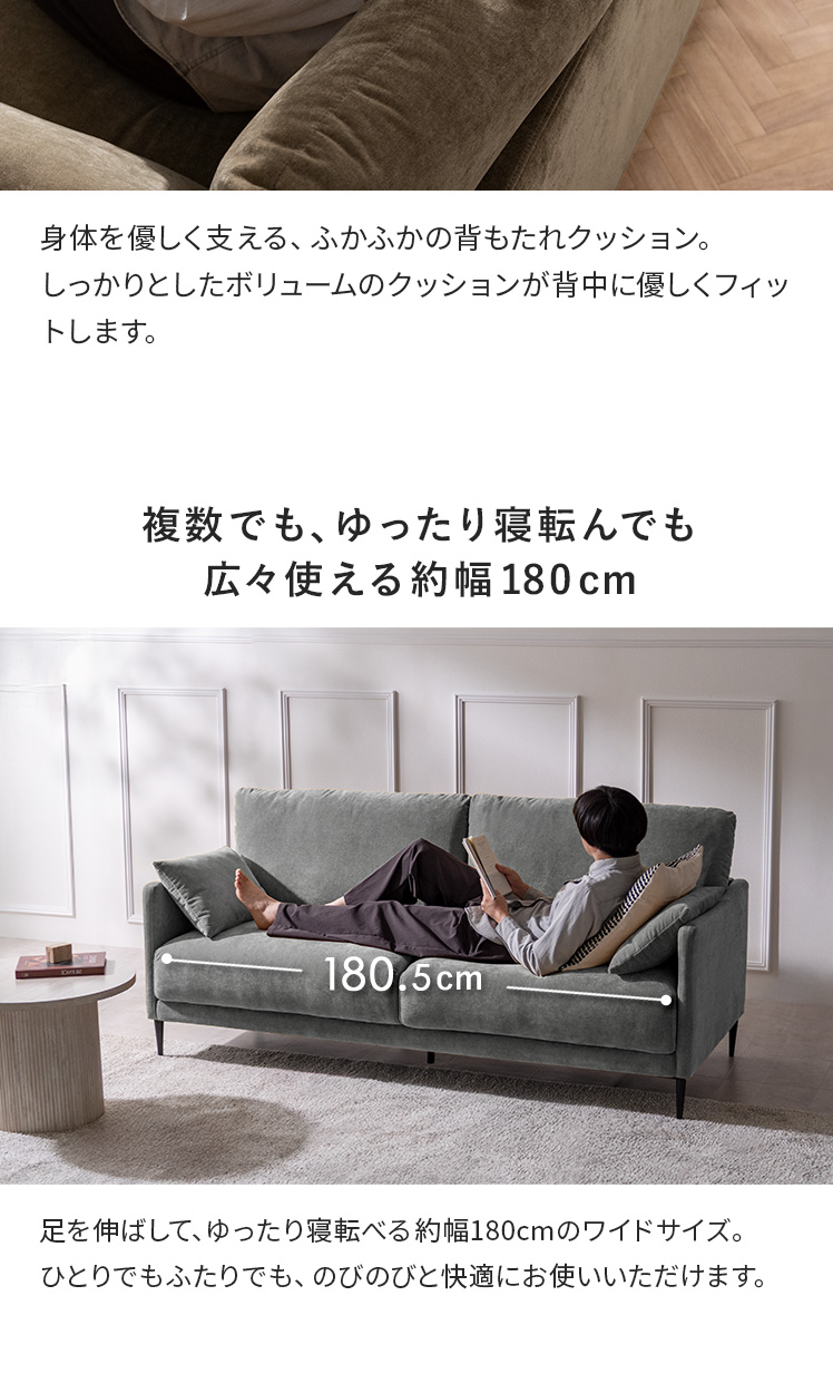 クッション付きモダンソファ Caldio〔カルディオ〕/表情豊かなシェニール生地が上質な空間を演出する、クッション付きモダンソファ“Caldio(カルディオ)”。ポケットコイルの弾力と極厚ウレタンの適度な沈み込みが身体を心地よく支え、贅沢なくつろぎ時間をもたらします。
