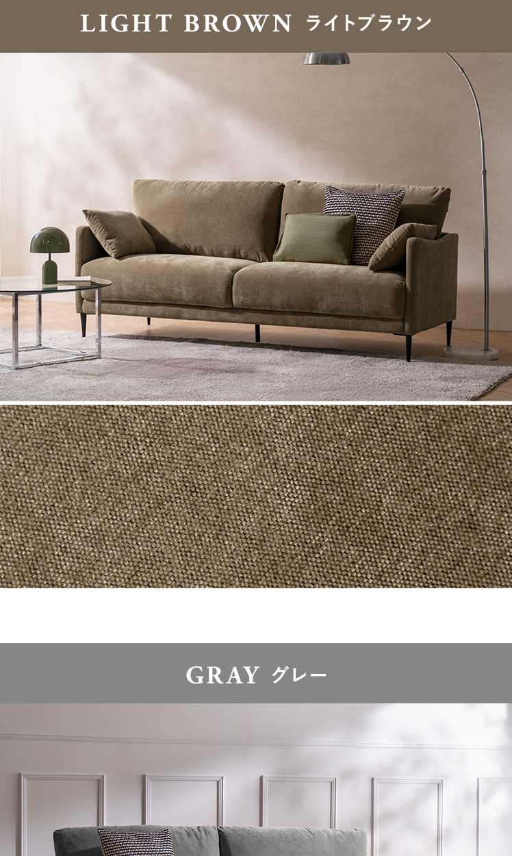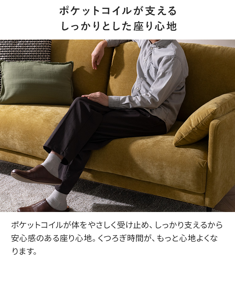 シェニール生地 ポケットコイル ウレタン ファブリック 2.5人掛け 3人掛け ゆったり