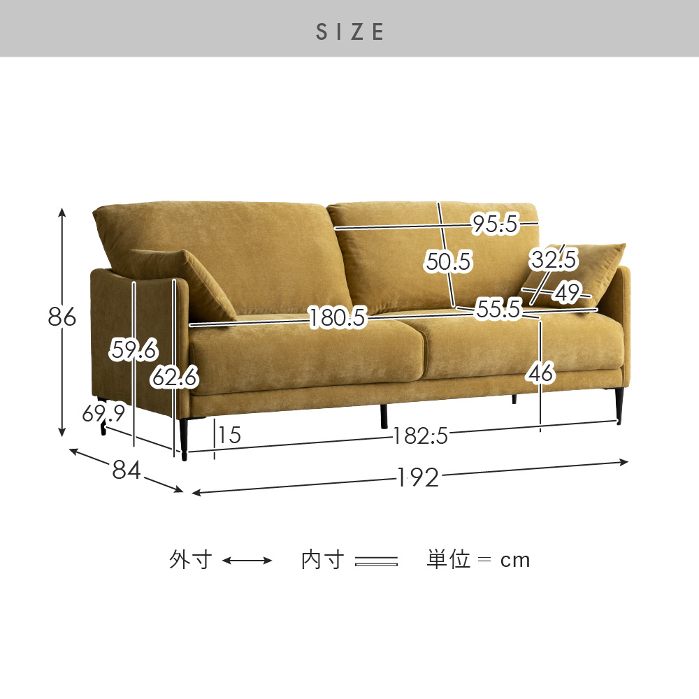 | サイズ | 約幅192×奥行き84×高さ86cm |